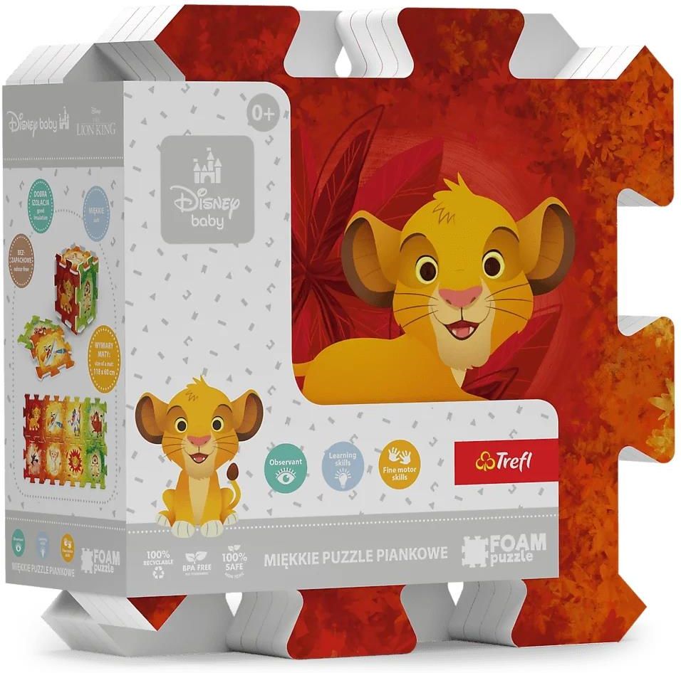 Układanka Puzzlopianka Disney, Król Lew Układanka puzzlopianka Król Lew to zestaw dużych i miękkich puzzli, stworzonych z myślą o małych fanach bajki Disneya. Z piankowych puzzli można budować figury przestrzenne takie jak kostka, czy pudełko lub ułożyć płaski obrazek o wymiarach 118 x 60 cm, który dzięki dobrym właściwością izolacyjnym może służyć jako miękka mata. Zabawka rozwija zmysł obserwacji i zdolności motoryczne. Puzzlopianka została wyprodukowana bez użycia BPA, jest bezzapachowa, całkowicie bezpieczna dla maluszka i w 100% nadaje się do recyklingu. Zawartość pudełka 8 dużych piankowych puzzli