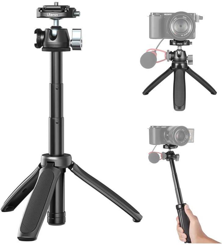 Mini statyw Ulanzi MT-46 z wysięgnikiem Statyw stołowy Ulanzi MT-46 z rozsuwaną teleskopowo kolumną centralną zakończoną głowicą kulową z gwintem 1/4’’ i dodatkowym mocowaniem zimna stopka. Demontowana szybkozłączka została wykonana z standardzie F38, co pozwala łączyć ją z pozostałymi akcesoriami …
