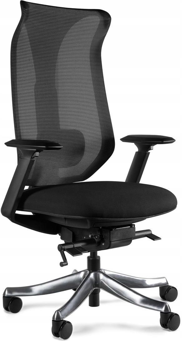 Techniczne: Kolorystyka czarny Materiał oparcia siatka Materiał siedziska tkanina Podłokietniki regulowane 3D Siedzisko regulowane z wysuwem Oparcie regulowane Podstawa jezdna polerowane aluminium Mechanizm synchron Montaż samodzielny - łatwy Wymiary fotela: Wysokość fotela 115 - 120 cm Szerokość …