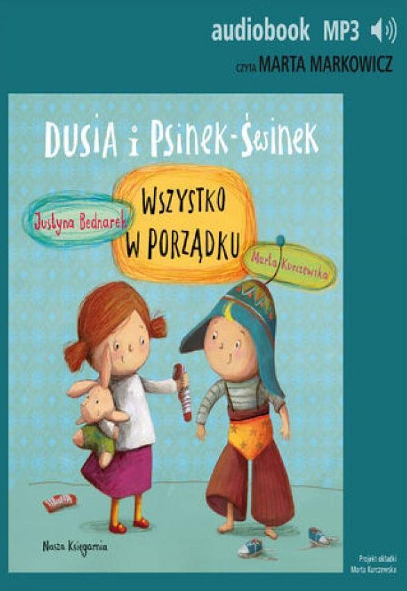 Dusia i Psinek-Świnek 2. Wszystko w porządku Tytuł oryginału: Dusia i Psinek-Świnek 2. Wszystko w porządku Autor: Justyna Bednarek Wydawca: Nasza Księgarnia ISBN: 9788310140876 Lektor: Marta Markowicz Data wydania audiobooka MP3: 2023 Czas trwania: 00:23:00 Cena okładkowa audiobooka: 14.99 zł > cenę promocyjną znajdziesz na naszej aukcji! WERSJA CYFROWA: AUDIOBOOK Format: MP3 Magdalena Felicja (dla przyjaciół Dusia) bardzo lubi czekoladę. Ale może ją pałaszować dopiero wtedy, kiedy zje brokuły. Zdaniem mamy wszystko trzeba robić we właściwym porządku. A przecież każdemu zdarza się pomylić kolejność. Na przykład zaspanemu tacie, który najpierw kładzie na bułce serek, a potem smaruje ją masłem! Albo Patrykowi, koledze z przedszkola, który najpierw wciąga spodnie, a potem majtki Na szczęście w świecie Psinka-Świnka, pluszowego prosiaczka, różne rzeczy dzieją się na odwrót, tyłem na przód i na lewą stronę. Najpierw podaje się ciasto, potem drugie danie, a na koniec zupę Brak porządku też jest w porządku! Dusia i Psinek-Świnek to seria książek dla najmłodszych o rezolutnej dziewczynce, która poznaje świat wokół siebie razem z mamą, tatą, najlepszym przyjacielem z przedszkola Tomkiem, a przede wszystkim ze swoim ukochanym Psinkiem-Świnkiem. Musicie jednak wiedzieć, że Psinek-Świnek nie tylko dodaje Dusi otuchy w trudnych życiowych momentach. Pluszak ma także własne tajemnice Justyna Bednarek z wykształcenia romanistka, z powołania pisarka dziecięca, autorka ponad pięćdziesięciu książek, w tym Niesamowitych przygód dziesięciu skarpetek (czterech prawych i sześciu lewych), które weszły do kanonu lektur szkolnych, a także Maryjek. Opowieści o Matce Boskiej, Pan Stanisław odlatuje oraz serii dla przedszkolaków Dusia i Psinek-Świnek. Zanim spełniła swoje marzenie o pisaniu bajek, przez wiele lat pracowała jako dziennikarka. Mieszka w Warszawie, ma troje dzieci, dwa psy i dwa koty. Jej dzieci mają dodatkowo dwie szynszyle (Oberżynę i Panią Pumpernikiel) oraz kota i psa, które się całują, kiedy nikt nie patrzy. Powyższy opis pochodzi od wydawcy. ------- UWAGA :: AUDIOBOOK DOSTARCZANY JEST W POSTACI CYFROWEJ. PLIKI POBIERZESZ TYLKO I WYŁĄCZNIE Z BIBLIOTEKI NA KONCIE ALLEGRO (WYMAGANA PRZEGLĄDARKA INTERNETOWA). AUDIOBOOKA NIE DOSTARCZAMY MAILEM. Kupując audiobooka na tej aukcji musisz posiadać konto w Allegro. Pamiętaj również, że aplikacja Allegro nie zawiera czytnika audiobooków i nie daje możliwości ich pobierania. Audiobook pobierzesz spakowany jako jeden plik *.ZIP - po pobraniu należy go rozpakować, aby uzyskać pliki mp3. Pliki przesłuchasz na dowolnym urządzeniu obsługującym standard mp3 np.: smartfonie, tablecie lub komputerze. Aby pobrać audiobook zaloguj się do serwisu Allegro, przejdź do zakładki "moje konto", następnie "moje zakupy", tam znajdziesz zakładkę "Ebooki" i "Moja półka". Audiobook będzie dostępny w momencie zatwierdzenia płatności przez nasz system. Twój audiobook jest zabezpieczony za pomocą znaku wodnego i nie posiada DRM. Znak wodny zawiera dane kupującego podane w Allegro. ------- Data wydania audiobooka często jest dniem wprowadzenia tytułu do sprzedaży i może nie być równoznaczna z datą wydania książki papierowej. Dodatkowe informacje możesz znaleźć na stronie wydawnictwa.