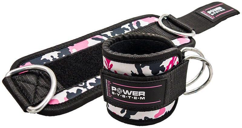 POWER-SYSTEM opaaska na kostkę Ankle Straps do dolnego wyciągu camo różowy Power-System POWER SYSTEM ANKLE STRAP CAMO-PINK to adapter na kostkę z metalowymi oczkami przeznaczony do mocowania do dolnego bloczka wyciągu. Adapter nadaje się do wykonywania różnych wariantów ćwiczeń wzmacniających nogi, uda, pośladki i biodra. DANE TECHNICZNE Materiał: neopren, stal Uniwersalny rozmiar - dopasowywany na rzep Idealny do ćwiczeń typu pull-up Dla mężczyzn i kobiet