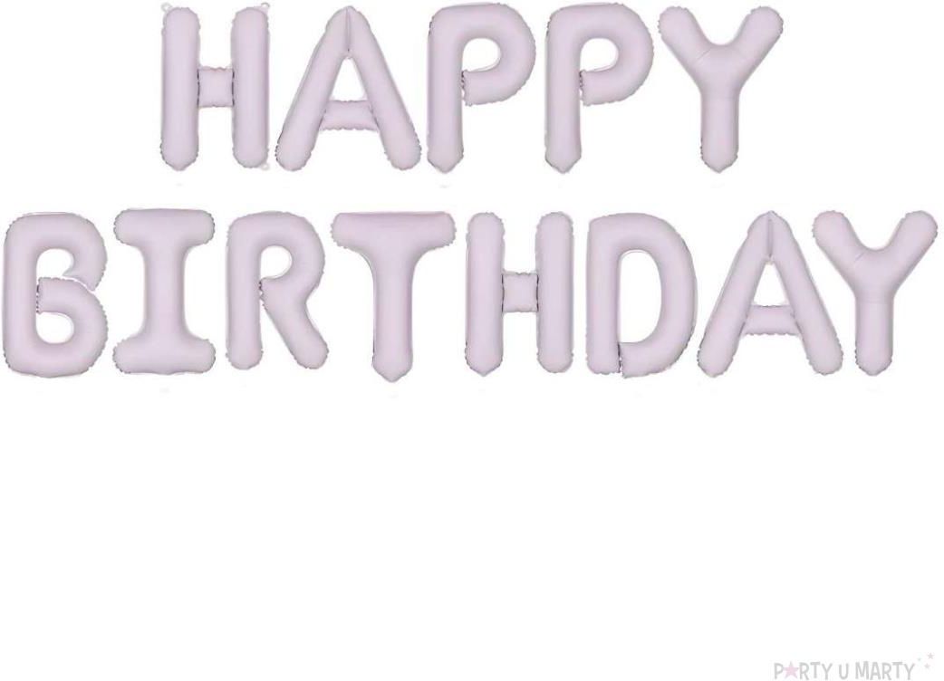 Balon foliowy Happy Birthday 340x35cm fiolet Partydeco ✅ ✔️ Balon foliowy matowy Happy Birthday w kolorze fioletowym, wymiary ok. 340 x 35 cm (134 x 14"). Do napompowania tylko powietrzem. Każdy balon jest samouszczelniający się. Balony posiadają po 4 haczyki ułatwiające montaż napisu do wstążki. …