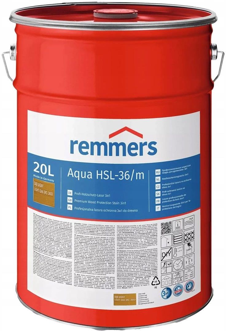 Remmers Aqua Hsl-36 Profi 20L Dąb Jasny Lazura Impregnat Do Drewna 3W1 8064611 Mielno