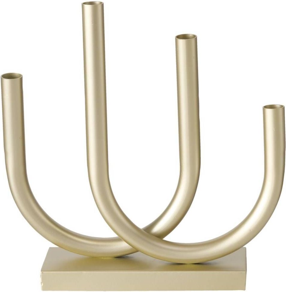 Świecznik z metalu na cztery świece w kolorze antycznego złota. Metalowy świecznik w kolorze antycznego złota będzie doskonałą dekoracją do Twojego wnętrza. Przeznaczony na cztery pojedyncze świece przepięknie zaprezentuje się ustawiony na komodzie czy stole. Jego matowe wykończenie idealnie …