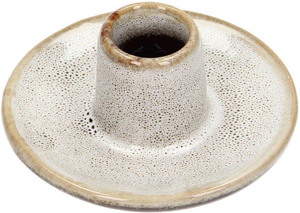 Porcelanowy świecznik na pojedynczą długą świecę w kolorze beżowym. Świecznik na pojedynczą świecę wykonany z porcelany to wspaniała dekoracja dla miłośników rustykalnego stylu. Oryginalny kształt oraz kolorystyka z delikatnym nakrapianiem z widocznie zaznaczonym rantem czyni z niego oryginalny dodatek do wnętrza.Sprawdź naszą ofertę na stylowe świeczniki i świece i znajdź coś wyjątkowego do Twojego wnętrza. Świecznik przeznaczony na świecę o śr. 2 cm. Wymiary: szer. 9 cm, gł. 9 cm, wys. 6 cm.