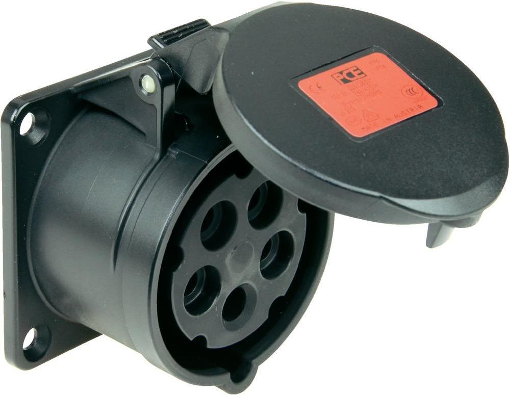 PCE Gniazdo tablicowe 16A 5PIN 400V IP44 Specyfikacja: Gniazdo tablicowe Materiał: Tworzywo PA6 Wyprowadzenie przewodu: Proste Rozmiar kołnierza: 70mm Styki: Mosiężne Napięcie znamionowe: 400V Prąd znamionowy: 16A Zaciski śrubowe Stopień ochrony: IP44 Kolor: Czarny 315-6x, 315-6X