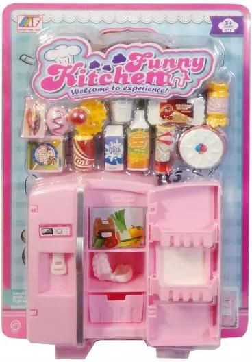 Kuchenne mebelki dla lalki lodówka. W środku znajdują się różne akcesoria m.in.: soki, mleko, ciasta, kubki. Zabawka dla dzieci od 3 lat. Produkt zapakowany w kartonową podstawkę z przezroczystym kloszem. Podane wymiary są wymiarami opakowania. EAN: 5902496192427