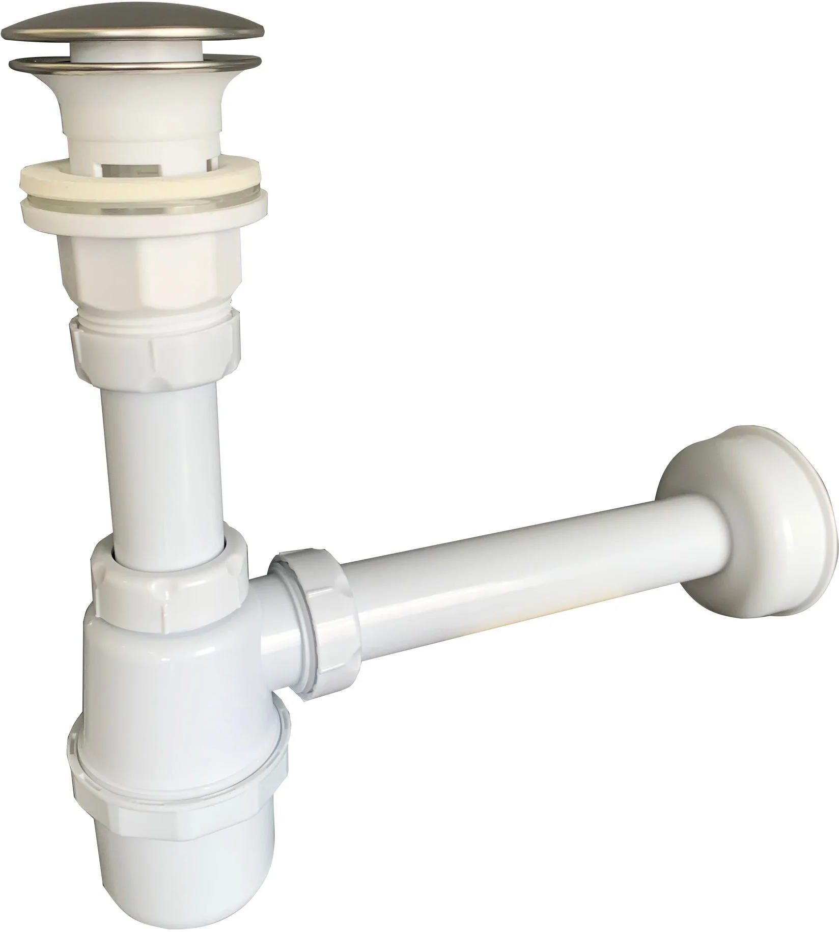 Syfon umywalkowy z korkiem klik-klak chrom gl0021 to syfon butelkowy producenta Jano, który zapewnia łatwość i szybkość montażu. Powyższy model przeznaczony do wykończenia umywalek powstał z tworzywa sztucznego, dzięki czemu nie ulega uszkodzeniom wskutek różnicy temperatur ani czynników mechanicznych. Produkt odporny na odkształcenia występuje w komplecie z automatycznym korkiem klik-klak z przelewem, który zapewnia komfortowe i bezpieczne użytkowanie. Metalowy grzybek pokrywa chromowana powłoka. Odpływ otwierany jest i zamykany poprzez naciśnięcie korka. Oferta obejmuje syfon, korek automatyczny, rozetę, uszczelki oraz instrukcję montażu.