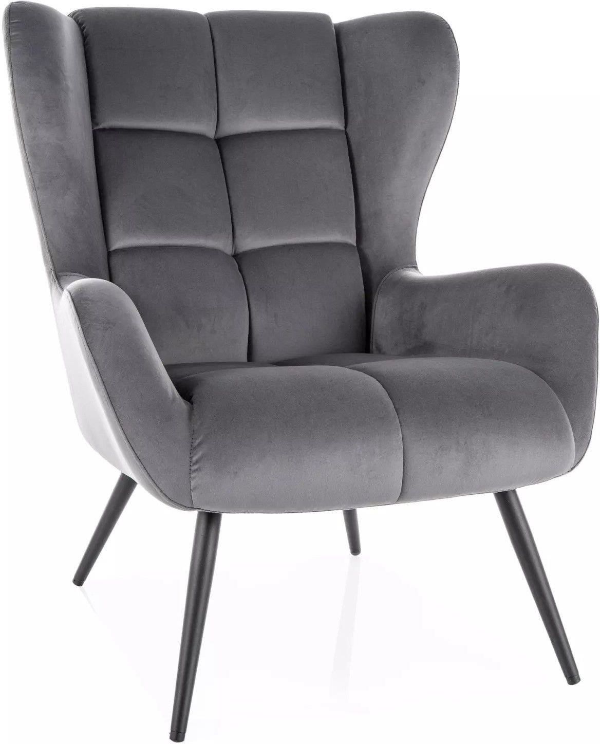 Fotel LOUIS VELVET Signal typu uszak z pikowanym oparciem i obszernym siedziskiem to doskonałe miejsce na chwilę relaksu przy kawie lub książce. Jego kubełkowa forma otula ciało, zapewniając wyjątkowy komfort. Miękkość i elegancja welurowej tkaniny Bluvel Tapicerka z tkaniny welurowej Bluvel nie tylko wygląda luksusowo, ale jest również przyjemna w dotyku. Dostępna w beżowym lub szarym kolorze, harmonizuje z różnymi aranżacjami wnętrz. Stabilność dzięki czarnym metalowym nóżkom Solidny metalowy stelaż w czarnym macie zapewnia trwałość i stabilność. Proste nóżki dodają nowoczesnego charakteru, podkreślając elegancki design fotela. Idealny do codziennego wypoczynku Fotel nie tylko zachwyca wyglądem, ale przede wszystkim komfortem. Wysokie oparcie i miękkie siedzisko sprawiają, że każda chwila spędzona w nim to czysta przyjemność. Stylowy akcent w Twoim wnętrzu Ten fotel uszak to nie tylko mebel, ale również wyraz stylu. Jego pikowane detale i elegancka forma wprowadzą do wnętrza nutę luksusu i przytulności.Produkt posiada wiele wariantów.