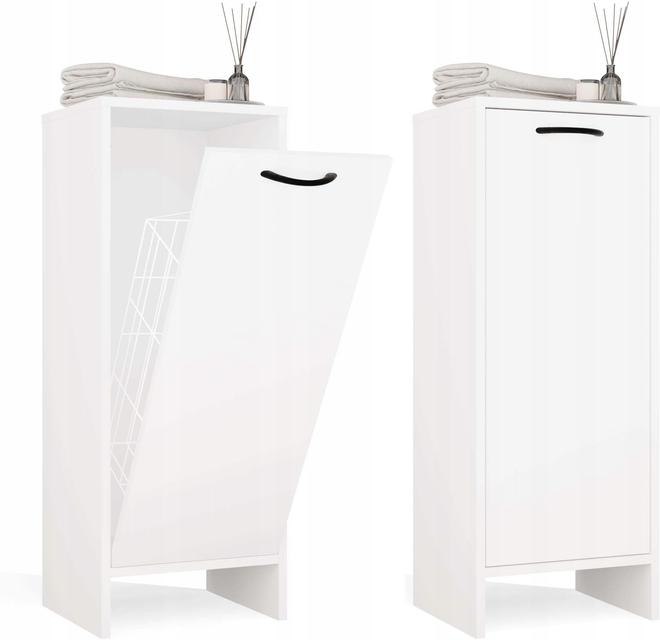 SZAFKA / REGAŁ ŁAZIENKOWY Z KOSZEM NA PRANIE MODEL: NINA 1K KOLOR: BIEL MAT Szafka łazienkowa NINA 1K to praktyczny mebel stworzony z myślą o wygodnym i estetycznym przechowywaniu prania. Dzięki kompaktowej formie i funkcjonalnemu wnętrzu z uchylnym koszem, idealnie sprawdzi się nawet w niewielkich łazienkach, pozwalając zaoszczędzić miejsce i utrzymać porządek. Dlaczego warto wybrać NINA 1K Kosz na pranie w zestawie – pozwala w prosty sposób ukryć brudną odzież i zachować porządek Uchylny front – zapewnia łatwy dostęp do wnętrza mebla Nowoczesny wygląd – minimalistyczna forma i biały kolor pasują do każdej łazienki Kompaktowy rozmiar – idealna do mniejszych wnętrz Solidne wykonanie – szafka z wytrzymałej płyty laminowanej o grubości 16 mm Czarny uchwyt z tworzywa – praktyczny i estetyczny akcent WYMIARY Szerokość całkowita: 35 cm Wysokość całkowita: 90 cm Głębokość całkowita: 30 cm Prześwit pod meblem (od podłogi do dolnej krawędzi): 10,5 cm Wysokość kosza na pranie: 60,2 cm Głębokość kosza na pranie: 24,6 cm MATERIAŁ: Konstrukcja mebla: płyta laminowana 16 mm Uchwyt: tworzywo sztuczne (kolor czarny) Wewnątrz: metalowy kosz na pranie Użytkowanie: Powierzchnię mebla czyścić przy pomocy miękkiej szmatki. Unikać stosowania silnie działających środków chemicznych. W opakowaniu: Instrukcja montażu wraz ze wszystkimi potrzebnymi akcesoriami montażowymi. Meble są fabrycznie zapakowane do samodzielnego montażu. Informacja: Dokładamy wszelkich starań, aby kolory mebli prezentowane na zdjęciach były odwzorowane możliwie jak najdokładniej. Należy jednak pamiętać, że ich odbiór może się różnić w zależności od indywidualnych ustawień monitora lub ekranu (takich jak jasność, kontrast, temperatura barwowa czy technologia wyświetlania). Rzeczywisty odcień produktu może się także różnić w zależności od warunków oświetleniowych. Ewentualne różnice kolorystyczne nie wynikają z wady produktu.