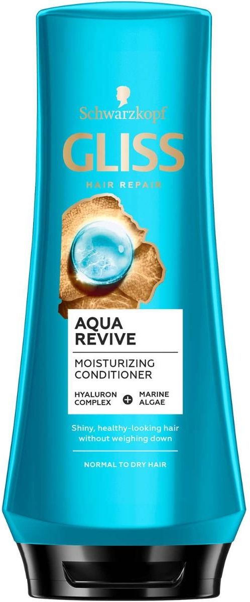 Gliss Aqua Revive odżywka do włosów suchych i normalnych 200ml (P1) 9000101658736 Czy Twoje włosy bywają suche i wydają się obciążone? Tak jak sucha skóra potrzebuje nawilżenia, tak samo Twoje normalne lub suche włosy potrzebują specjalnej pielęgnacji. Odżywka do włosów Schwarzkopf GLISS Aqua Revive nawilży i widocznie poprawi jakość Twoich włosów, bez obciążenia! Linia produktów AQUA REVIVE została stworzona by podkreślić piękno i odpowiedzieć na wszystkie potrzeby włosów przesuszonych i normalnych. Bogata, ale lekka formuła z kompleksem kwasu hialuronowego i algami morskimi zapewnia odczucie nawilżenia i połysk. nbsp• Nawilżenie: do 48h uczucia nawilżonych włosów.. nbsp• Lśniące i zdrowo wyglądające włosy: Wypielęgnowane włosy pełne zdrowego blasku. nbsp• Ułatwienie rozczesywania. nbsp• KOMPLEKS KWASU HIALURONOWEGO I ALGI MORSKIE: lekka formuła zapewnia idealne nawilżenie bez obciążenia. nbsp• Naturalne składniki: 95% składników pochodzenia naturalnego (w tym woda). nbsp• Butelka wykonana w 50% z plastiku pochodzącego z recyklingu (poza nakrętką). Formuły wszystkich produktów GLISS, opracowane na bazie ZAAWANSOWANYCH SKŁADNIKÓW AKTYWNYCH oraz SKARBÓW NATURY i dopasowane do konkretnych potrzeb włosów, zapewniają włosom regenerację oraz widocznie poprawiają ich kondycję. Aquanbsp (Water,nbsp Eau)nbsp ·nbsp Cetearylnbsp Alcoholnbsp ·nbsp Quaternium-87nbsp ·nbsp Stearamidopropylnbsp Dimethylaminenbsp ·nbsp Dimethicone · Distearoylethyl Hydroxyethylmonium Methosulfate · Isopropyl Myristatenbsp ·nbsp Dimethylsilanolnbsp Hyaluronatenbsp ·nbsp Laminarianbsp Saccharinanbsp Extractnbsp ·nbsp Panthenol · Hydrolyzed Keratin · Citric Acid · Glycerin · Dicaprylyl Carbonate · Propylene Glycol · Sodium Benzoate · Dimethiconol · Phenoxyethanol · Potassium Sorbatenbsp ·nbsp Polyquaternium-37nbsp ·nbsp Benzyl Alcohol · Benzyl Salicylate · Parfumnbsp (Fragrance)nbsp ·nbsp Sodiumnbsp Methylparaben