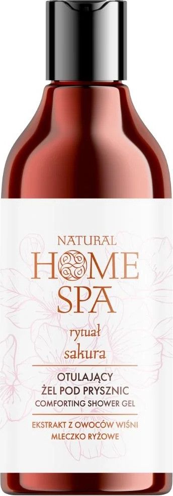Natural Home SPA otulający żel pod prysznic – ekstrakt z owoców wiśni i mleczko ryżoweOtulający żel pod prysznic NATURAL HOME SPA to aż 93 % składników pochodzenia naturalnego nawiązujących do tradycyjnego rytuału Sakura, zainspirowanego japońską ceremonią podziwiania urody kwiatów.Zawartość drogocennych wyciągów roślinnych: ekstraktu z owoców wiśni, oleju ryżowego, mleczka ryżowego sprawia, że produkt efektywnie oczyszcza skórę, jednocześnie nawilżając, odżywiając i pielęgnując ją.Subtelny, otulający zapach kwiatu wiśni, wanilii i bursztynu koi oraz odświeża, oddziałując na wszystkie zmysły.Składniki aktywneekstrakt z owoców wiśni – wygładza i wyrównuje koloryt skóry.mleczko ryżowe – kondycjonuje i chroni skórę.Produkt przebadany dermatologicznie.Jak używaćNanieś żel na wilgotną skórę i delikatnie masuj do uzyskania piany. Następnie spłucz wodą. W przypadku dostania się produktu do oczu przemyj wodą.O marce Natural Home SPANatural Home SPA to marka naturalnych kosmetyków stworzona z myślą o celebrowaniu momentów i drobnych przyjemności, dzięki kojącej sile rytuałów.Zaawansowane i starannie opracowane formuły Natural Home SPA czerpią z wiedzy, mądrości i doświadczenia naszych przodków, dlatego odwołują się do tradycyjnych zabiegów, składników i rytuałów pielęgnacyjnych znanych od pokoleń.Intensywne i orientalne zapachy silnie oddziałują na zmysły, będąc swoistą aromaterapią, a wysoka zawartość składników pochodzenia naturalnego doskonale odżywia i pielęgnuje skórę.Natural Home SPA czerpie z uzdrawiającej mocy natury i chce się jej odwdzięczyć, dlatego też wszystkie opakowania marki oraz receptury zostały dobrane tak, aby ograniczyć wpływ produktu na środowisko naturalne.
