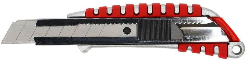 Nóż z ostrzem wysuwanym łamanym ze stali SK5, uniwersalnego zastosowania Korpus wykonany z aluminium i gumy TPR Mechanizm blokady ostrza Parametry: Średnica: 18 mm Marka: PROLINE Gwarancja: -