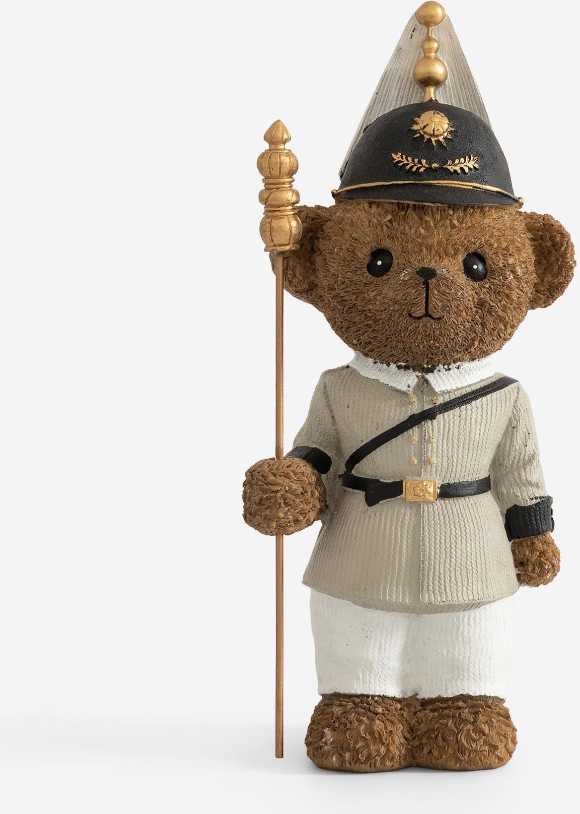 Figurka dekoracyjna MIŚ podkreśli świąteczny klimat w salonie lub jadalni. Nasz bohater ubrany jest na galowo, bo w mundurze. Posiada ubranie w kolorach bieli i szarości oraz złote ozdoby na czapce. Figurka mierzy 25,5 cm. Została wykonana ze sztucznej żywicy.