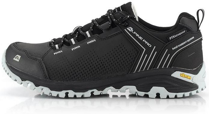 Buty turystyczne niskie męskie ZurrefeAlpine Pro, to najwyższej jakości obuwie całoroczne, idealne do turystyki pieszej, wycieczek w góry. Buty te świetnie nadają się także jako wielosezonowe buty do codziennego, miejskiego użytku. Cholewka wykonana jest z skóry naturalnej, oraz mocnego materiału tekstylnego. Fabryczna impregnacja gwarantuje im wysoką wodoodporność. Podeszwa Vibram gwarantuje bardzo dobrą amortyzację i tłumienie nierówności, a dzięki głębokiemu bieżnikowi i odpowiedniej twardości gumy, zapewnia doskonałą przyczepność nawet na śliskiej nawierzchni. Wkładki PEP to antybakteryjne i przeciwgrzybiczne wkładki, które przeciwdziałają rozwojowi bakterii. Zastosowano w nich membranę PTX, która zapewnia wysoką wodoodporność, szczególnie przydatną w zmiennych warunkach pogodowych oraz nie ogranicza znacząco oddychalności, przez co wnętrze buta pozostaje suche i komfortowe, nawet podczas bardzo nie sprzyjającej pogody. W okolicach pięty zastosowano system HSS, wzmocnienie, które zapewnia kostce stabilizację na trudniejszych szlakach. Technologie Alpine Pro: PTX - jest to jeden z topowych materiałów, wykorzystywanych przez Alpine Pro w produkcji wytrzymałych butów trekkingowyh. Tworzywo jest pokryte specjalna laminowaną membraną, która zapewnia wysoką wodoodporność. Włókna są bardzo lekkie, dobrze przepuszczają powietrze, a co za tym idzie buty świetnie sprawdzą się podczas górskich wycieczek. PEP - specjalna wkładka, która została stworzona do użycia w obuwiu trekkingowym i sportowym. Produkt charakteryzuje się właściwościami antybakteryjnymi, które zapobiegają namnażaniu się w bucie bakterii oraz powstawaniu przykrych zapachów. Dodatkowo wkłada dobrze dopasowuje się do kształtu stopy i rozprowadza ciepło po całej jej powierzchni, co zapewnia duży komfort użytkowania. VIBRAM - to włoska marka produkująca sprawdzone podeszwy dla firm obuwniczych na całym świecie. Charakteryzują się się niezwykłą trwałością, używane są m.in. w butach Alpine Pro w wyższych modelach marki. Można jest spotkać w butach turystycznych niskich oraz wysokich górskich i w kolekcji miejskiej, sportowej. Zapewnia bardzo dobrą przyczepność podczas marszu. Występuje w ponad 50 rodzajach, każdy z nich przeznaczony jest do użytkowania w innych warunkach atmosferycznych i podłożowych. Podeszwy marki Vibram nie powinny być użytkowane w warunkach miejskich, gdyż struktura asfaltu i betonu używana na drogach i chodnikach, szybciej niszczy ten górski typ podeszwy. Do zastosowań miejskich firma Vibram, poleca całkiem inne modele podeszw które są przeznaczone do zastosowania w warunkach miejskich. HSS - dobre rozwiązanie wzmacniające okolice pięty. Technologia ta powoduje, że pięta jest dobrze chroniona przed urazami zewnętrznymi, a także świetnie stabilizuje stopę podczas użytkowania.