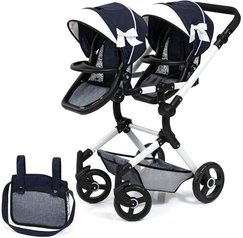 Wózek dla lalek bliźniaczych Twin Neo niebieski