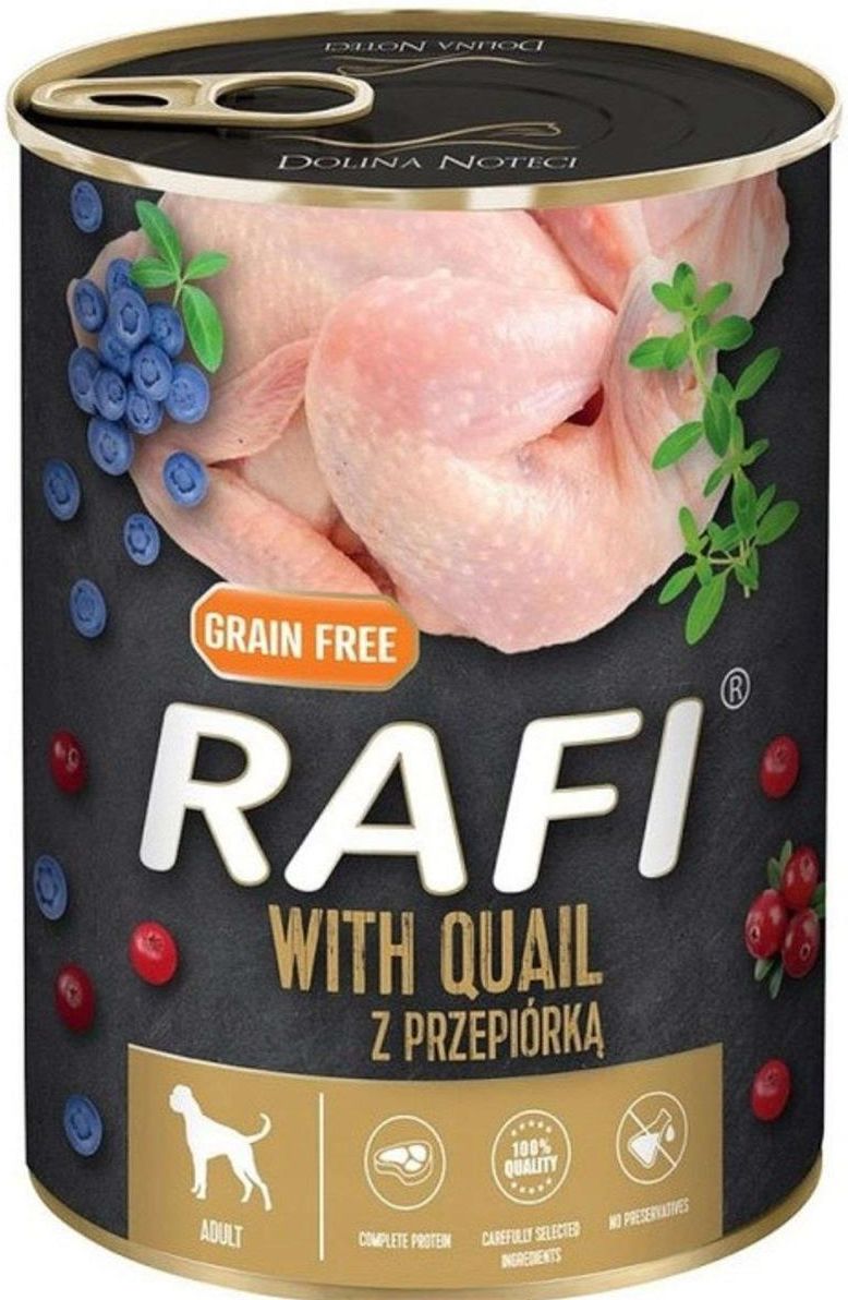 Dolina Noteci Rafi Z Przepiórką 800g Dolina Noteci Rafi Z Przepiórką 800g - Opis Produktu Pełnoporcjowa mokra karma dla dorosłych psów wszystkich ras – z przepiórką. Tym, co wyróżnia mokrą karmę Rafi z przepiórką, jest wysoka zawartość białka o bogatym składzie aminokwasowym (fenyloalanina i …