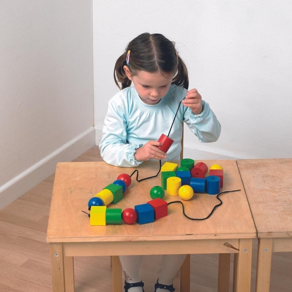 Dla kogo? Drewniane duże korale do nawlekania to zabawka przeznaczona nie tylko dla dzieci od 3 roku życia, ale również dla dorosłych. Zabawa polega na nawlekaniu na sznurówki klocków. Można tworzyć wiele kombinacji, nawlekać według koloru kształtu lub określonego wzoru. Dziecko rozwija kreatywność …