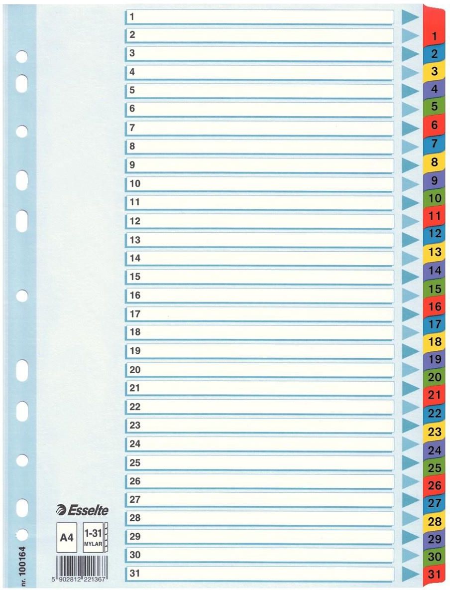 Esselte Przekładki kartonowe 1-31 Mylar 100164 Mikołów