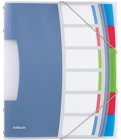 Teczka segregująca Esselte Vivida wykonana z półprzezroczystego PP o grubości 0,5 mm z wytłoczonym delikatnym wzorem zawiera 6 wielokolorowych przekładek trzy klapki na tylnej okładce elastyczne zamknięcie do ochrony zawartości wymienny indeks na przedniej okładce etykieta na grzbiecie wymiary: 266 …