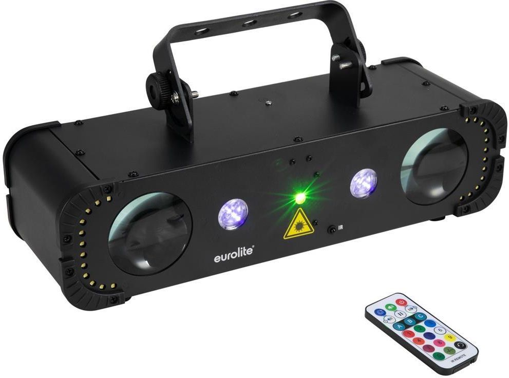 CECHY Efekt świetlny 4w1 z matrycą LED, światłem czarnym, laserem RG i stroboskopem 2 diody laserowe emitują setki czerwonych i zielonych wiązek laserowych Matrycą, światłem czarnym, laserem i stroboskopem można sterować indywidualnie 14 zintegrowanych programów pokazowych Sterowanie poprzez DMX; …