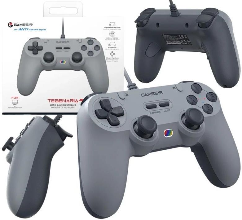 Przewodowy Kontroler Pad Gamesir Tegenaria Lite Szary PC Switch iOS Android Kluczowe cechy Ultraniskie opóźnienie – przewodowe połączenie gwarantuje natychmiastową reakcję bez opóźnień. Pałeczki GameSir™ z efektem Halla – precyzyjna kontrola bez dryftu, nawet po tysiącach godzin gry. Częstotliwość odpytywania 1000 Hz – błyskawiczna reakcja przy każdym ruchu. Membranowe wyzwalacze analogowe – płynne, wyściełane i niezwykle trwałe. Podwójne asymetryczne silniki wibracyjne – subtelna, immersyjna informacja zwrotna podczas gry. 2 programowalne przyciski wstecz – dostosuj kontroler do swojego stylu gry. Funkcja turbo – dostępna na przyciskach A/B/X/Y/L1/R1/L2/R2 – idealna do gier akcji. Ergonomiczna konstrukcja – laserowo grawerowane uchwyty z antypoślizgową teksturą. Retro stylistyka – klasyczny, minimalistyczny design inspirowany latami 90. Symetryczny układ drążków – naturalne i wygodne ułożenie dłoni podczas długich sesji. GameSir Tegenaria Lite – klasyka i technologia w jednym GameSir Tegenaria Lite to idealne połączenie nostalgii lat 90-tych z nowoczesnymi rozwiązaniami dla graczy. Inspirowany klasycznym designem retro, kontroler zachowuje prostotę stylu, a jednocześnie oferuje technologie z najwyższej półki, które zapewniają maksymalną precyzję. Przewodowe połączenie o ultraniskim opóźnieniu gwarantuje natychmiastową reakcję na każdą komendę, co czyni go doskonałym wyborem do grania na platformach Switch, Android, iOS, PC czy Steam. Zaawansowane wibracje dla większej immersji Dwa asymetryczne silniki wibracyjne umieszczone w uchwytach kontrolera generują zróżnicowane efekty dotykowe, idealnie dopasowane do akcji w grze. Dzięki nim poczujesz zarówno subtelne drgania, jak i mocne uderzenia, co znacząco podnosi realizm i wciągnięcie w rozgrywkę – niezależnie od gatunku, w który grasz. Czułość na najwyższym poziomie Kontroler wyposażono w częstotliwość odpytywania 1000 Hz, co oznacza, że każde naciśnięcie przycisku lub ruch drążka jest niemal natychmiast rejestrowany przez system. Tak wysoka responsywność jest szczególnie ważna w grach, gdzie liczy się każda sekunda – od strzelanek, po gry wyścigowe i zręcznościowe. Błyskawiczna reakcja to klucz do osiągania najlepszych wyników i płynnej, komfortowej rozgrywki. Komfortowe spusty i przyciski membranowe Kontroler posiada miękkie, amortyzowane wyzwalacze analogowe oraz przyciski ABXY w technologii membranowej, które zapewniają jednocześnie komfortowy klik i wytrzymałość. Dzięki precyzyjnie dobranej sprężystości i głębokości, każda akcja wykonywana jest intuicyjnie, a naciskanie przycisków staje się naturalne nawet podczas dłuższych sesji grania. Bez dryftu, z pełną precyzją Zastosowane w padzie drążki GameSir™ z efektem Halla to prawdziwa rewolucja w kontroli ruchu. Dzięki bezdotykowej technologii eliminują one efekt dryfowania, zapewniając precyzyjne sterowanie nawet po wielu miesiącach intensywnej gry. Dodatkowo, ich konstrukcja pozwala na płynny i jednolity ruch w pełnym zakresie 360°, co gwarantuje niezrównaną dokładność – niezależnie od rodzaju gry. Dwa programowalne przyciski Na tyle kontrolera umieszczono dwa w pełni programowalne przyciski, które możesz przypisać do najczęściej używanych komend lub złożonych makr. Dzięki temu dostosujesz kontroler do własnych potrzeb, zyskasz szybszy dostęp do kluczowych akcji i zwiększysz swoją efektywność w grze – bez konieczności odrywania palców od drążków. Komfortowy i stylowy design Obudowa GameSir Tegenaria Lite została zaprojektowana z myślą o wygodzie – posiada ergonomiczny kształt dopasowany do każdej dłoni oraz laserowo grawerowane, antypoślizgowe uchwyty, które zapewniają pewny chwyt nawet podczas intensywnej gry. Symetryczny układ drążków odpowiada potrzebom zarówno graczy prawo-, jak i leworęcznych, umożliwiając długie sesje bez uczucia zmęczenia. Funkcja turbo – osiągnij przewagę bez wysiłku Dzięki funkcji turbo, dostępnej na przyciskach A / B / X / Y / L1 / R1 / L2 / R2, możesz przypisać automatyczne powtarzanie naciśnięć, co znacząco ułatwia grę w dynamicznych tytułach, takich jak bijatyki, strzelanki czy hack'n'slash. Dostosuj tempo i tryb działania turbo do swoich potrzeb i zyskaj realną przewagę nad przeciwnikami. Klasyczny wygląd z nowoczesną duszą Tegenaria Lite łączy ponadczasową estetykę lat 90. z nowoczesną funkcjonalnością. Wersje kolorystyczne, takie jak retro grey i biały, przywodzą na myśl kultowe konsole z przeszłości, ale pod nostalgiczną obudową kryje się potężna technologia, której oczekują współcześni gracze. Zawartość zestawu Kontroler GameSir T3 Lite Przewód USB-C → USB-A do podłączenia i ładowania Instrukcja obsługi / karta szybkiego startu Specyfikacja techniczna Typ kontrolera: przewodowy gamepad Łączność: USB-C → USB-A (przewodowa) Kompatybilność: PC (Windows 10/11), Android, iOS, Nintendo Switch Drążki analogowe: 2 szt. z funkcją kliknięcia (L3 + R3), technologia Hall Effect (anti-drift) D-pad: kierunkowy, membranowy Przyciski akcji: A / B / X / Y (membranowe) Przyciski funkcyjne: Home, M (Menu), opcjonalnie Capture (zależnie od wersji) Przyciski naramienne: L1, R1 Triggery: L2, R2 (analogowe) Programowalne przyciski tylne: L4, R4 (2 szt.) Funkcje dodatkowe: Turbo (programowalne na 8 przyciskach) Zasilanie: przez przewód USB-C (brak akumulatora, kontroler działa przewodowo) Waga: ok. 212 g Wymiary: ok. 15,5 × 10,5 × 6,5 cm
