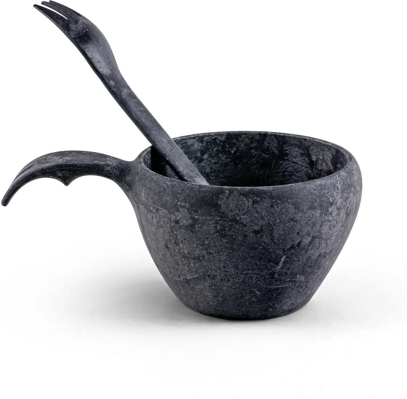Zestaw naczyń Kupilka 37+Spork Set - black łączy elementy idealne dla miłośników aktywnego stylu życia. Całość zestawu została zaprojektowana z myślą o zrównoważonym podejściu do środowiska, nadając się do recyklingu i wpisując się w ducha ekologicznego stylu życia. Zestaw naczyń Kupilka 37+Spork Set - black obejmuje kubek z ergonomicznym uchwytem, który zapewnia wygodę podczas picia. Dodatkowo zestaw zawiera sporka - niezastąpione narzędzie, łączące funkcję łyżki i widelca, umożliwiające korzystanie z opakowań liofilizowanej żywności dzięki odpowiedniej długości. Całość została wyprodukowana z biomateriału, w którym 50% stanowią włókna celulozowe z drewna sosny, a kolejne 50% to plastik, co czyni ten zestaw świadomym wyborem dla ekologicznych entuzjastów. Materiał ten jest odporny na wysokie oraz niskie temperatury, nawet do -30°C. Elementy zestawu Kupilka 37+Spork Set - black nie absorbują zapachów i smaków potraw. Łatwość utrzymania w czystości oraz możliwość mycia w zmywarce sprawiają, że są praktyczne. Zestaw Kupilka 37+Spork Set - black - najważniejsze cechy:Zestaw zawiera kubek oraz sporka;Kubek z wygodnym uchwytem;Spork łączy łyżkę i widelec;Długość sporka pozwala na wygodne korzystanie z opakowań liofilizowanej żywności;Zestaw wykonany z biomateriału łączącego 50% sosnowego włókna celulozowego i 50% plastiku;Materiał zestawu jest odporny na wrzącą wodę i temperatury poniżej zera, nawet do -30°C;Elementy nie chłoną zapachów i smaków potraw;Łatwy do utrzymania w czystości;Można myć w zmywarce;Całość nadaje się do recyklingu.