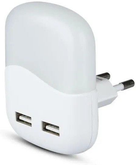 Opis produktu Wbudowany czujnik światła 15lx Wbudowane 2 porty USB przystosowane do ładowania urządzeń Rozmiar 60x60x54.5mm Moc - 0,45W Przyjazne dla oczu nocne światło LED wytwarzające przyjemne ciepłe światło. Ta lampka nocna LED może oświetlić każdą ciemną przestrzeń w domu, hotelu lub biurze.