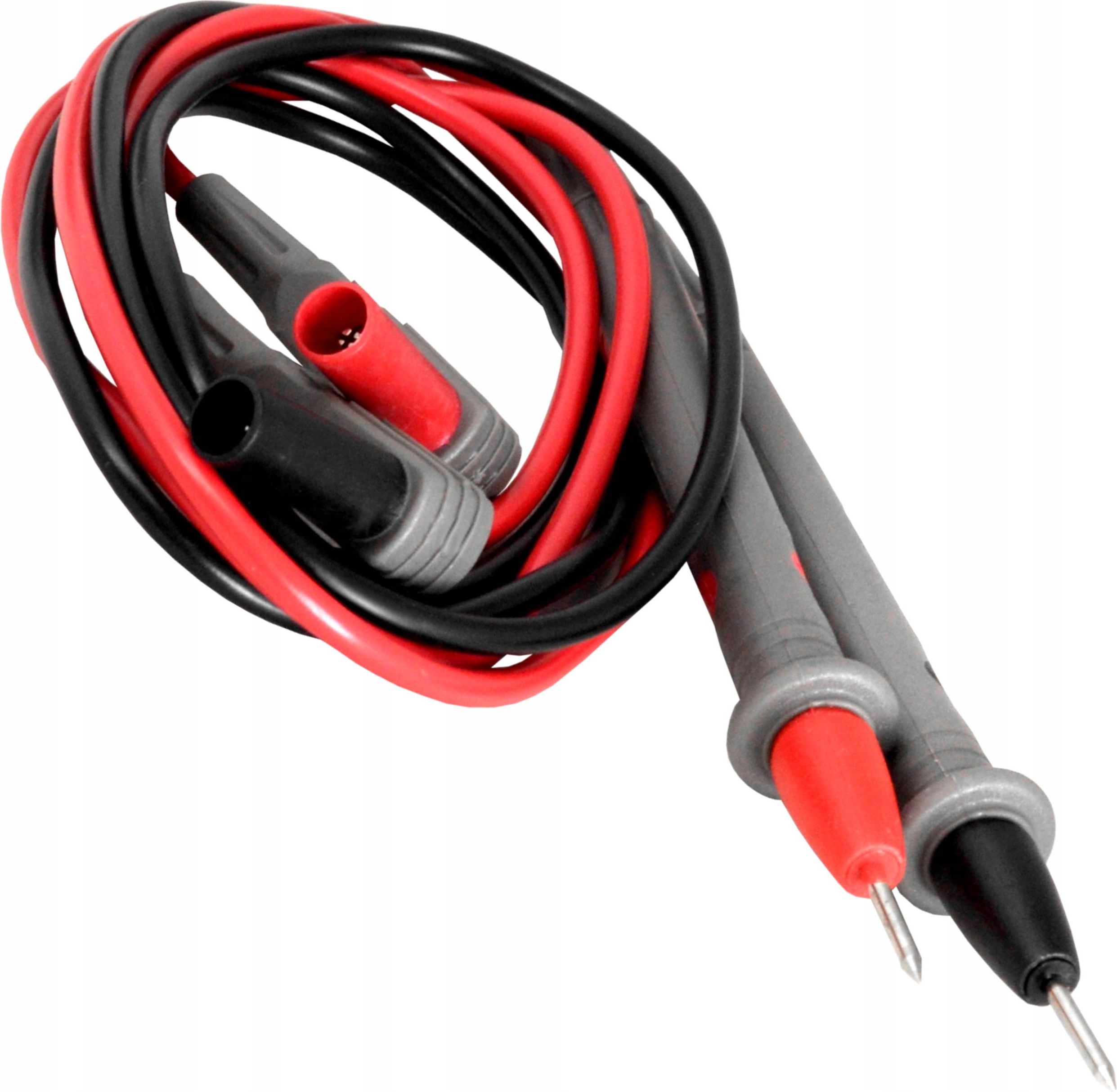 KABLE DO MIERNIKA 10A 1000V LEXTON ➡️ WYSOKA JAKOŚĆ Komplet przewodów wysokiej jakości do mierników uniwersalnych CATIII 1000V. Kable cechuje dobra miękkość. Kable pasują do wszystkich multimetrów z gniazdem bananowym. Rączki są w pełni izolowane, co zapewnia bezpieczeństwo użytkownika. Igłowe końcówki pomiarowe, umożliwiają precyzyjne pomiary nawet najdrobniejszych elementów elektronicznych. Kable mają całkowitą długość ok. 100cm i są dostosowane do pomiaru napięcia o maksymalnej wartości 1000V. ➡️ PARAMETRY TECHNICZNE Długość rękojeści: 14 cm Długość próbnika: 15 mm Średnica przewodów: 3 mm Długość przewodów: 50 mm
