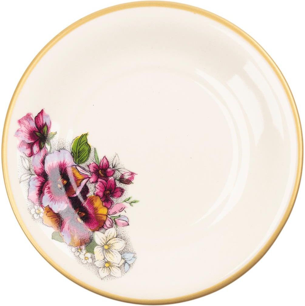 Spodek w kolorze kremowym. Ozdobiona motywem bratków. Wykonany z użytkowej ceramiki szlachetnej. Wyprodukowany w Polsce przez fabrykę ceramiki szlachetnej w Mieroszowie. Ceramikę można myć w domowych zmywarkach oraz używać w mikrofali. Wzór: bratki bordo (produkt został wykonany ręcznie. Układ kalki oraz malowania mogą w nieznacznym stopniu różnić się od tego ze zdjęcia) Produkt 1x spodek Wymiary średnica spodka: 13-14 cm Materiał: ceramika szlachetna Użytkowanie zmywarka mikrofalówka produkt dopuszczony do kontaktu z żywnością