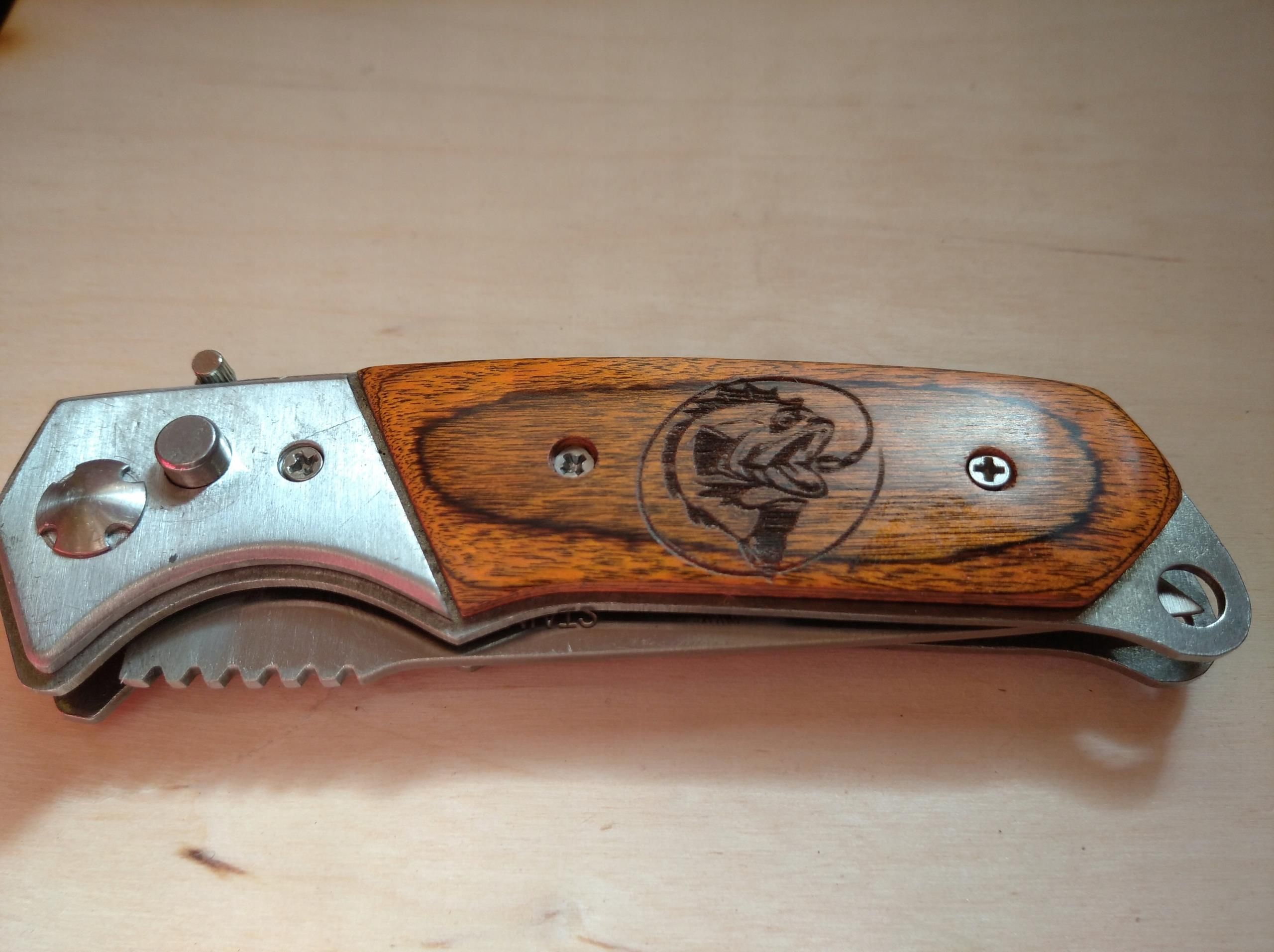 Noz spręźynowy ze spersonalizowany grawerunkiem laserowym na rekojesci wykonany z wysokogatunkowej stali nierdzewnej rękojeść obite drewnem czeresniowym Na którym wykonany jest grawer Noz posiada blokadę aby przypadkowo nie otworzył się w kieszeni W zestawie jest etui z wytrzymałego materialu które …