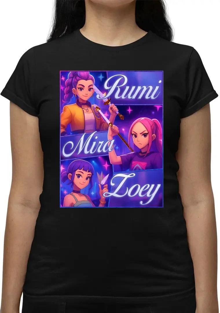Rumi, Mira i Zoey - damska koszulka na prezent dla filmu filmu KPop Demon Hunters Mikołów