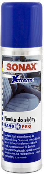 SONAX Xtreme pianka do skóry 289100 Usuwa brud, olej, tłuszcz. Brutalna wobec brudu – łagodna dla skóry. Pianka o naturalnym zapachu skóry do czyszczenia i pielęgnowania foteli samochodowych, elementów wystroju wnętrza, pokrowca na motocykl, mebli i innych elementów z gładkiej skóry. Usuwa brud, olej i tłuszcz nadając skórze wyjątkową sprężystość. Naturalny wosk pszczeli zapewnia długotrwałą konserwację. Nie zawiera barwników, można ją stosować do skór we wszystkich kolorach. Pianka szczególnie nadaje się do samochodów z podgrzewanymi fotelami i do skóry o perforowanej powierzchni.