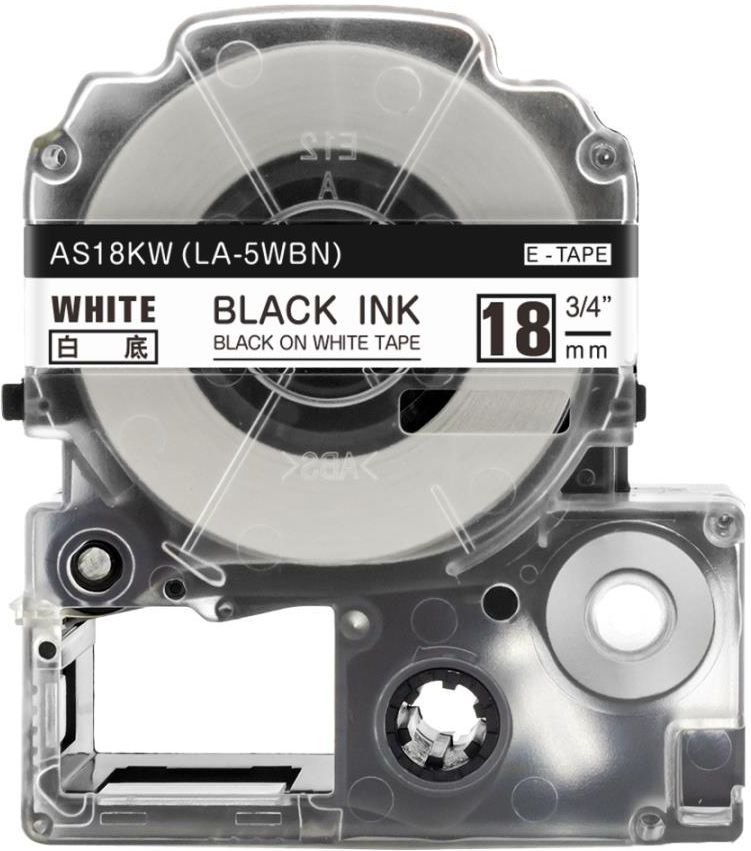 Standardowa samoprzylepna taśma Epson LK do znakowania elementów w układach elektrycznych i telekomunikacyjnych. Wielozadaniowa taśma jest niezastąpiona we wszystkich wymagających miejscach, takich jak biuro, magazyn, rozdzielnia elektryczna. ? Najważniejsze cechy: Biała taśma z czarnym nadrukiem LK-5WBN, LA-5WBn, AS18KW Szerokość 18mm, długość 9m Mogą być również stosowane na grzbietach okładek do płyt CD/CD-R/DVD czy kaset magnetofonowych Odporne taśmy LK zapewniają długoletnią trwałość Wodoodporne i trwałe zarówno w cieple, jak i zimnie Taśma posiada dzielony wzdłuż podkład zabezpieczający klej ? Kompatybilność: LabelWorks LW-400 LabelWorks LW-K400 LabelWorks LW-600P LabelWorks LW-700 LabelWorks LW-900P LabelWorks LW-1000P LabelWorks LW-Z700 LabelWorks LW-Z900 LabelWorks LW-Z5xxx Series LabelWorks LW-Z5010BE LabelWorks LW-Z5000BE