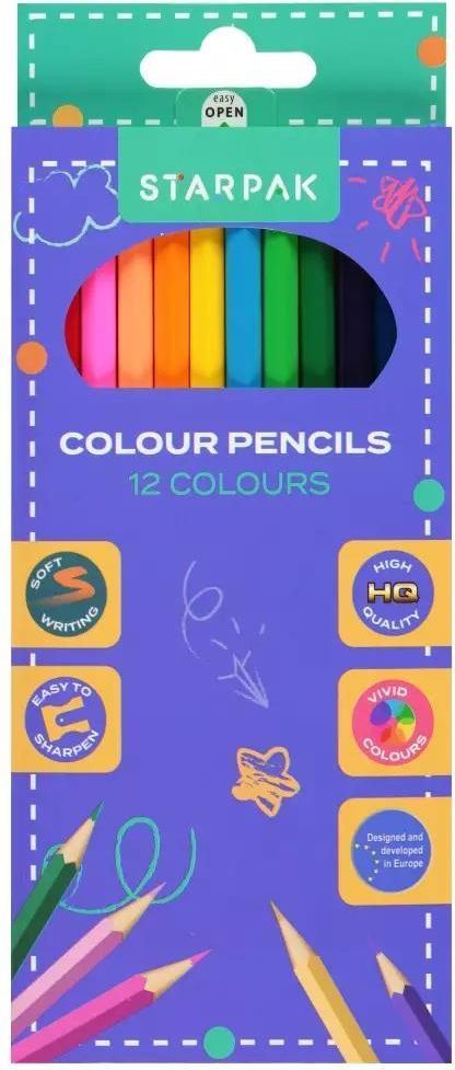 Wysoka jakość rysików, najbardziej podstawowe przybory plastyczne w przedszkolu i szkole, żywe i intensywne kolory, łatwe w struganiu, nie łamią się, nie brudzą, pakowane w pudełko z systemem easy open dzięki, któremu można je łatwo otworzyć i potem zamknąć. Komplet 12 kredek STARPAK w kartonowym pudełku z serii School. Kredki to najbardziej podstawowe przybory plastyczne. Wykorzystywane podczas zabawy i nauki w domu, przedszkolu i szkole. Wszystkie kredki STARPAK mają żywe kolory, dzięki czemu tworzone prace będą zachwycały intensywnością i nasyceniem barw. Kredki STARPAK są łatwe w struganiu i nie łamią się, co jest bardzo ważne, szczególnie dla młodszych dzieci. Dzięki tym kredkom można precyzyjnie rysować kształty i kontury oraz kolorować. Zmieniając nacisk można uzyskać bardziej lub mniej intensywny kolor. Zapoznaj się również z innymi produktami STARPAK z serii School! Zawartość opakowania: 12 kredek ołówkowych w 12 kolorach. Kredki wykonane z kolorowanego węgla drzewnego (grafit) w drewnianej osłonce. Wymiary/waga: wymiary produktu (dł.)[cm]: 18 cm, wymiary opakowania (wys. x szer. x gł.)[cm]: 21x9x1, waga produktu bez opakowania 1 szt. [kg]: 0,01 kg, waga produktu w opakowaniu [kg]: 0,07 kg. Produkt przeznaczony dla dzieci w wieku: 3+. Kredki pakowane w kartonik z systemem Easy Open. EAN: 5905523627961