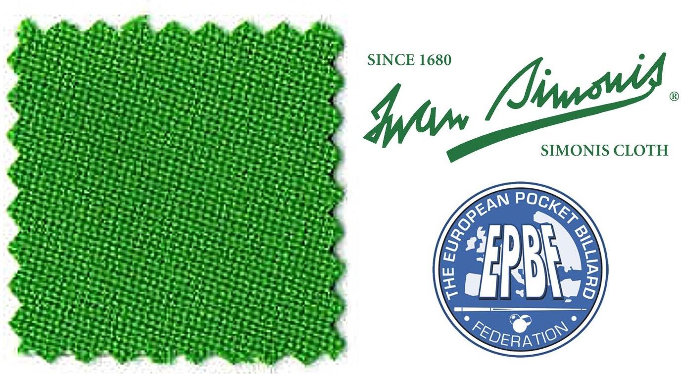 Sukno bilardowe SIMONIS 860 198cm APPLE GREEN Firma Euro-Tech posiada największy w Polsce stan magazynowy profesjonalnego sukna bilardowego Simonis 860 w szerokiej gamie kolorystycznej.Sukno Simonis 860 znane jest jako sukno używane praktycznie na każdym większym turnieju na świecie.Zawdzięcza to równomiernej powierzchni, wysokiej jakości oraz wieloletniemu doświadczeniu firmy Simonis w produkcji sukna bilardowego. Potrzebna ilość sukna Simonis w zależności od rozmiaru stołu: 12ft – 5 mb10ft – 4 mb9ft – 2,9 mb8ft – 2.7 mb7ft – 2.3 mb Skład: 90% wełna i 10% nylon;Szerokość: 198 cm;Gramatura: ± 410 g/m² Uwaga: w zależności od ustawień monitora i komputera, kolor sukna może się nieznacznie różnić od rzeczywistego. [[en]] {{Billiard cloth SIMONIS 860 198cm APPLE GREEN}}