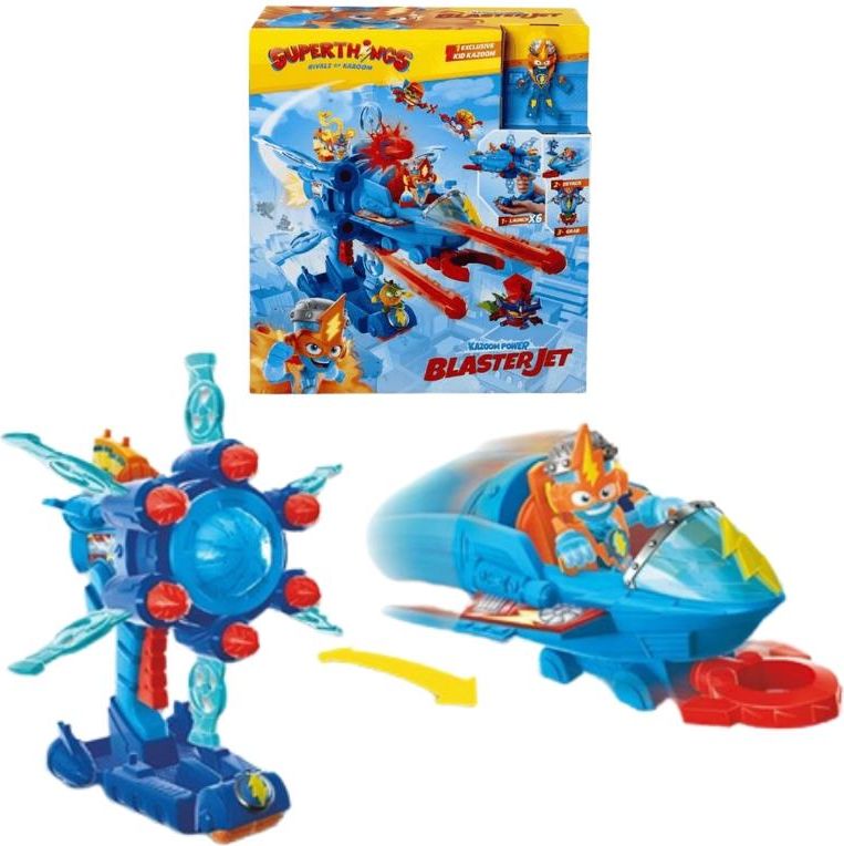 • Super Zings Superthings Zestaw Blaster Jet Pojazd Kid Kazoom Odrzutowiec Wyrzutnia 6 Pocisków