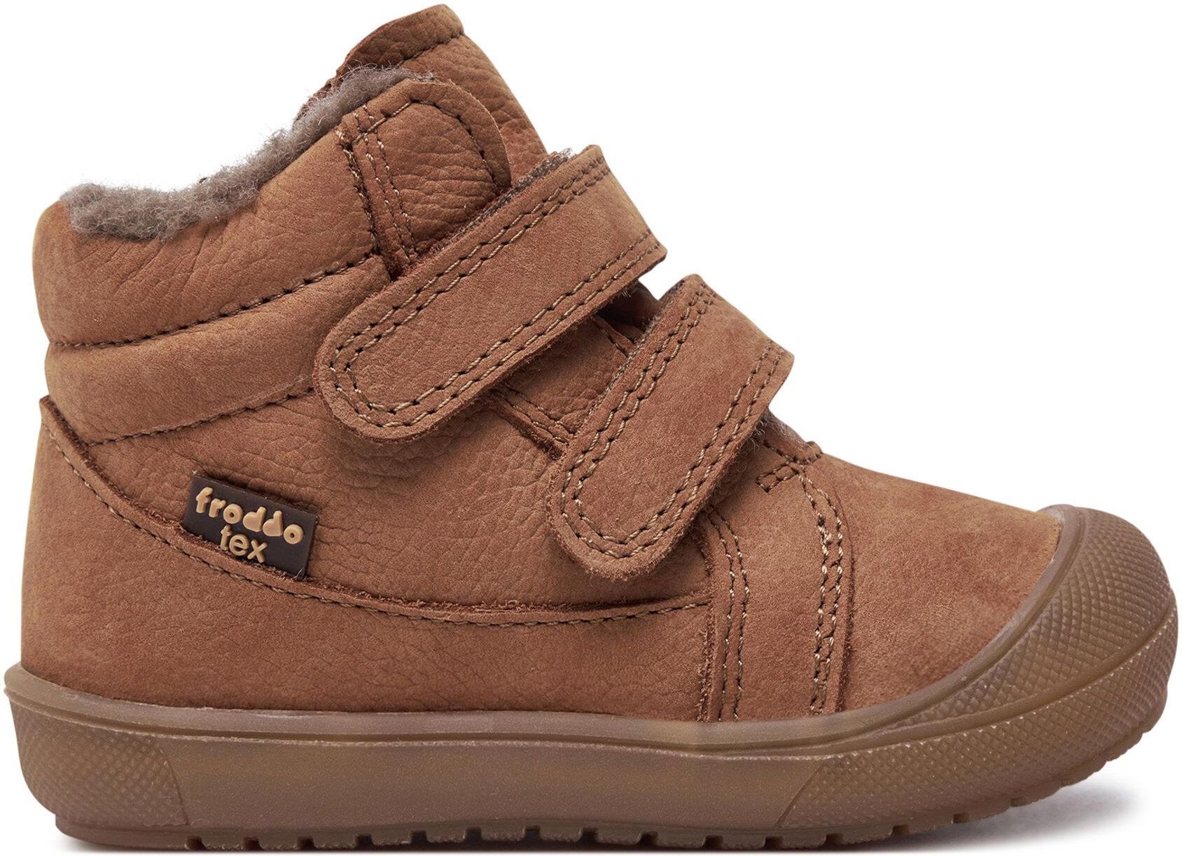 FRODDO barefoot trzewiki lekko ocieplane TEX cognac G2110138-2 r. 22 długość w środku r. 22 - 14 cm OPIS buty lekkie i elastyczne Wierzch: skóra, wewnątrz: membrana FRODDO-TEX i futerko, Podeszwa: TR, antypoślizgowa, Usztywniona pięta, szerokie czubki Dzięki nowemu modelowi obuwia FroddoTEX, stopy dziecka pozostają suche, niezależnie od warunków pogodowych.Lekko ocieplane trzewiki z membraną TEX to buty na chłodną jesień. Zalecany zakres temperatur +15 stopni do -2 stopni