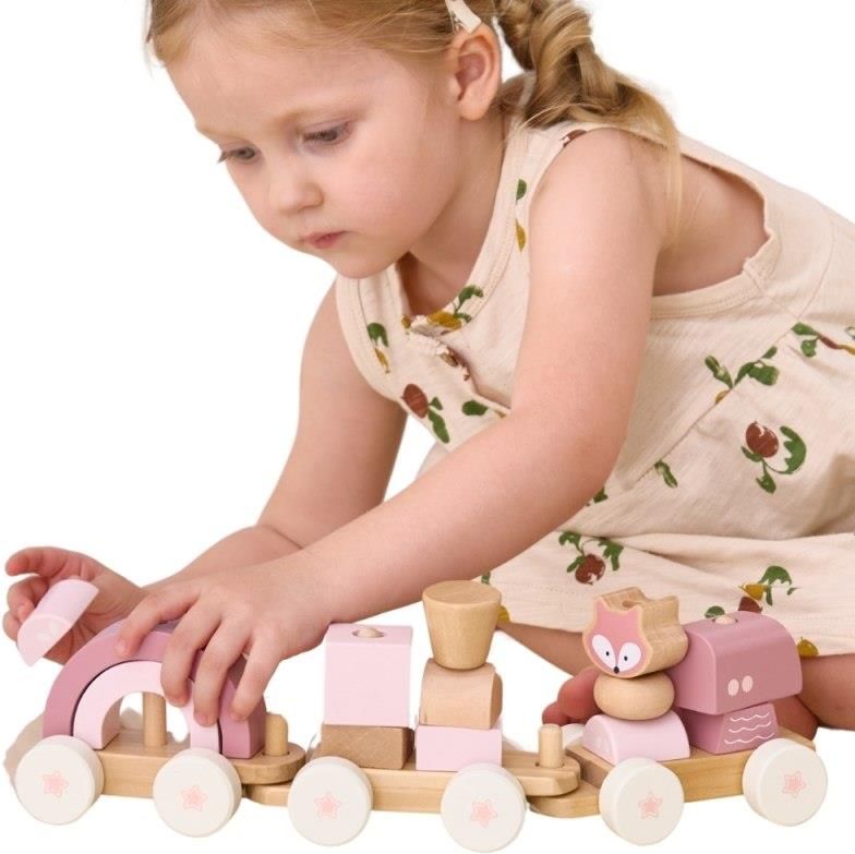 VIga Drewniana Układanka Pociąg z Wagonikami Klocki Urocza, różowa kolejka marki Viga z serii PolarB to idealna zabawka, która łączy radość zabawy z rozwijaniem zdolności manualnych i kreatywności. Składa się z 3 wagoników oraz 14 klocków o różnych kształtach, które można układać w dowolnych …