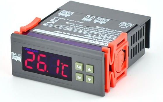 REGULATOR TEMPERATURY 220V OD -50C DO +110COpis produktu: Cyfrowy regulator temp. znajduje zastosowanie wszędzie tam gdzie istotna jest kontrola nad stałą temperaturą. Idealnie nadaje się do wszelkich instalacji grzewczych i chłodniczych oraz urządzeń o mocy do 1100W. Urządzenie wyposażone jest w duży i przejrzysty wyświetlacz LCD (Led). Nowoczesne i solidne wykonanie zapewnia mu wysoką wydajność i wytrzymałość. Prosty w obsłudze. Regulator może sterować urządzeniami grzewczymi lub chłodzącymi o mocy maksymalnej do 1100W, działa w obwodzie jako standardowy włącznik-wyłącznik (otwiera-zamyka układ) który załącza lub wyłącza podłączone do niego urządzenie grzewcze chłodzące przy ustawionym zakresie temperatur (temperatura wyczuwana jest przez dołączoną sondę).Specyfikacja techniczna: Wymiary urządzenia: Dł. 8,3cm X Szer. 7,1cm X Wys. 3,2 cm Długość przewodu sondy (czujnika): ok. 1m Zakres pomiaru temperatury ustawienia: -50C ~ +110C Błąd pomiaru temperatury: ± 0,5C Dokładność pomiaru temperatury: 0,1C Histereza (zakres ustawienia): 1 - 15C Temperatura pracującego urządzenia: 0 ~ 50C Temperatura przechowywania, warunków pracy urządzenia: -10 ~ 60C Zasilanie termostatu: sieciowe 230V, 50Hz Pobór mocy: 2W Maksymalne obciążenie na styku: 220V, 5A (1100W) Funkcja kalibracji temperatury Zabezpieczenie przed zwarciem Możliwość ustawienia dolnej i górnej granicy temperatur Zastosowanie: Zamrażarki Lodówki Grzałki Wędzarnie Zbiorniki wodne, akwaria Agregaty przemysłowe Bojlery i inne systemy o kontrolowanej temperaturzeStan: Nowy