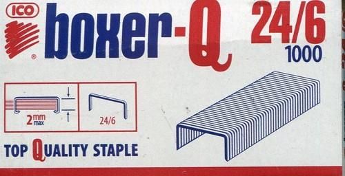 Zszywki wysokiej jakości Boxer Ico 24/6 wykonane z wysokiej jakości materiału twarde i wytrzymałe zdolność zszywania: do 25 kartek rozmiar: 24/6 1000 sztuk w kartoniku. kolor srebrny Opakowanie zbiorcze zawiera 10 op (oferta dotyczy 1 op = 1000 zszywek)