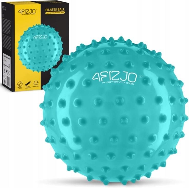 PIŁKA REHABILITACYJNA DO MASAŻU FIZJOTERAPII SENSORYCZNA Z KOLCAMI 20 CM Piłka rehabilitacyjna sensoryczna 20 cm 4FIZJO z wypustkami miętowa Znamy świetny sposób na poprawę kondycji po kontuzjach i mobilizację mięśni głębokich! Chcesz wiedzieć jaki? Wybierz piłkę rehabilitacyjną z wypustkami sensorycznymi! Postaw na skuteczny trening zarówno rehabilitacyjny, jak i fizjoterapeutyczny. Zobaczysz, jak dzięki temu niepozornemu przedmiotowi, zyskasz wiele korzyści dla zdrowia fizycznego i psychicznego. Nie przegap okazji i już teraz sprawdź ofertę małej rehabilitacyjnej piłki z kolcami 20 cm 4FIZJO! Piłka z wypustkami sensorycznymi 20 cm Piłka sensoryczna do ćwiczeń 4FIZJO jest przeznaczona do masażu i rehabilitacji, a także gimnastyki korekcyjnej dzieci oraz dorosłych. Pomaga też rozluźnić napięte mięśnie i złagodzić ból. Sprawdź cechy produktu i dopasuj model do własnych potrzeb. Parametry Kolor: miętowy Materiał: PVC Średnica piłki: 20 cm System anti-burst: tak W zestawie: pompka z systemem pull & push Zalety sensorycznej piłki rehabilitacyjnej z kolcami 4FIZJO Wskazane jest jej używanie przy rehabilitacji. Sprawdza się w terapii sensorycznej i pourazowej. Piłka rehabilitacyjna wspomaga mobilność kręgosłupa oraz pomaga zwiększyć ruchomość w stawach. Stosowana jest przy ćwiczeniach poprawiających koordynację ruchową i równowagę. Dodatkowe wypustki sensoryczne, znajdujące się na całej powierzchni, pobudzają receptory czuciowe. Piłka do ćwiczeń jest wykonana z wytrzymałego materiału PVC. Jest łatwy w czyszczeniu. Piłkę można szybko napompować, dzięki pompce dołączonej do zestawu. Praktyczne zastosowanie rehabilitacyjnej piłki do ćwiczeń Sensoryczna piłka do ćwiczeń 4FIZJO idealnie sprawdzi się przy ćwiczeniach rehabilitacyjnych i terapeutycznych. Małe piłki z kolcami20 cm są: Stosowane w terapii pourazowej, integracji sensorycznej Wykorzystywane w gimnastyce korekcyjnej i ćwiczeniach izometrycznych Pomocne w łagodzeniu dolegliwości bólowych w obrębie kręgosłupa – wzmacnia mięśnie grzbietu Wykorzystywane w leczeniu schorzeń kostno-stawowych Niezastąpione przy ćwiczeniach ogólnorozwojowych Ważne dla zwiększenia mobilności ciała i aktywizacji stawów Istotne przy poprawie krążenia krwi i pobudzenia receptorów czuciowych Stosowane przy zabawach z dziećmi Piłka gimnastyczna z kolcami – niezbędnik w rehabilitacji Mała piłka rehabilitacyjna sensoryczna jest jedną z kilku rodzajów piłek do gimnastyki kręgosłupa. Wyróżniają ją dodatkowe gumowe kolce niepowodujące bólu. Znajdują się one na całej powierzchni piłki. Wypustki sensoryczne zapewniają przyjemne rozluźnienie i doznania akupresurowe. W ten sposób stymulowane są napięte mięśnie. Taka forma masażu mięśniowo-powięziowego pobudza receptory czuciowe i poprawia ukrwienie organizmu. Tym samym uzyskany optymalny ucisk pozwala zmniejszyć napięcia nerwowe czy ból. Piłka gimnastyczna do ćwiczeń 4FIZJO jest wykonana z wytrzymałego materiału. Jest on bezpieczny w użytkowaniu i łatwy w czyszczeniu. Przed podjęciem ćwiczeń rehabilitacyjnych skonsultuj się z lekarzem lub fizjoterapeutą. Pomogą dobrać Ci odpowiednie ćwiczenia. Jak napompować małą piłkę rehabilitacyjną 4FIZJO? Pozwól piłce ogrzać się do temperatury pokojowej – po odpakowaniu pozostaw ją w temperaturze pokojowej przez ok. 2 godziny. Napompuj piłkę do 80% jej objętości – przed pierwszym użyciem piłki pozostaw ją napompowaną na 24 godziny, aby się rozciągnęła i mogła nabrać odpowiednią średnicę i kształt. Wysokiej jakości piłki wykonane są z grubego materiału, który potrzebuje czasu na rozciągnięcie. Dopompuj piłkę do maksymalnej średnicy – po 24 godzinach napełnij piłkę do 100% objętości i zamknij dokładnie otwór białą zatyczką. Wypompowanie piłki – jeżeli chcesz spuścić powietrze z piłki, wystarczy, że podważysz i wyciągniesz białą zatyczkę. Możesz sobie pomóc, siadając na piłce.