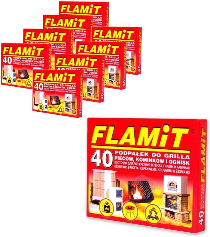 Podpałka biała FLAMiT 40 kostek pali się silnym i równomiernym płomieniem. Doskonale nadaje się do rozpalania grilla, w piecach kaflowych, piecach CO i kominkach. Zestaw zawiera 9 opakowań.