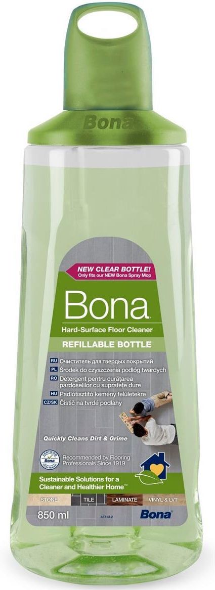 Wkład do Spray Mopa Bona Tile & Laminate Cleaner Nowe opakowanie, pasujące do poprzedniej generacji mopów (niebieskich/granatowych) Wymienny wkład wielokrotnego użytku do mycia płytek, laminatów i podłóg winylowych Pojemność: 0,85L Bona Tile & Laminate Cleaner jest łatwym w użyciu, bezpiecznym i skutecznym środkiem do czyszczenia podłóg. Ułatwia zarówno codzienne sprzątanie, jak i czyszczenie bardzo brudnych podłóg, nie zostawiając przy tym matowych śladów. Opakowanie zawiera gotowy do użycia środek, nie należy go rozcieńczać z wodą. Przeznaczony specjalnie do: płytek ceramicznych, laminatu, linoleum, winylu, marmuru i innych Można stosować wraz z pastą do płytek i powierzchni laminowanych Gotowy - łatwy w użyciu Posiada certyfikatGreenguard* Neutralne pH Normy GREENGUARD są jednymi z najbardziej rygorystycznych norm dotyczących emisji związków chemicznych na świecie Wkład wielokrotnego użytku - wystarczy przelać środek z 4L opakowania (dostępny w naszej ofercie) Skład produktu AQUA, Long-chained (C10) alcoxylated alcohol, PPG-2 METHYL ETHER, Alcohol ethoxylate PROPYLENE GLYCOL PROPYL ETHER, Alanine, N,N-bis(carboxymethyl)-, trisodium salt, Polymer, Citric Acid, Perfume, BENZISOTHIAZOLINONE, SODIUM HYDROXIDE, Colorant