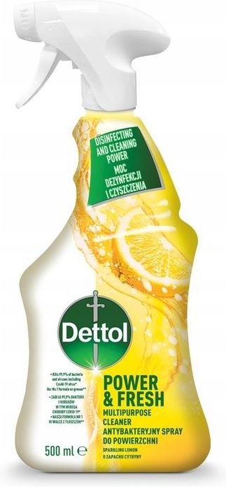 OFICJALNY DYSTRYBUTOR MARKI DETTOL Antybakteryjny Spray Do Powierzchni Power&Fresh - zestaw 5x500ml DETTOL SPRAY DO POWIERZCHNI POWER&FRESH Pojemność 5x500ml Skutecznie dezynfekuje spryskane obszary, w tym powierzchnie mające kontakt z żywnością Zabija 99,9% bakterii i przetestowanych wirusów* Zawiera niejonowe środki powierzchniowo czynne Bezbarwny O zapachu cytryny z limonką Nie zawiera wybielacza Przeznaczony do różnego rodzaju powierzchni w Twoim domu Nie pozostawia smug Łatwy w użyciu spryskiwacz - wystarczy ustawić czerwoną dyszę w pozycji ON i rozpylić preparat bezpośrednio na powierzchnię Potrójna moc działania (tłuszcz, przypalone jedzenie i brud w łazience) w walce z codziennymi trudnymi zabrudzeniami. Pozostawia czyste i lśniące powierzchnie *dot. SARS-CoV-2 Przed skorzystaniem z środków biobójczych przeczytaj informacje dotyczące produktu, aby zachować niezbędne środki ostrożności. CO SPRAWIA, ŻE SPRAY DETTOL JEST TAK EFEKTYWNY? Dettol Wielofunkcyjny Spray Do Powierzchni Power&Fresh to sprawdzony produkt do dezynfekcji i czyszczenia powierzchni. Jego właściwości antybakteryjne i drożdżakobójcze pozwalają zachować długotrwałą czystość. Tłuszcz, przypalone jedzenie, czy brud w łazience, Dettol Power&Fresh jest odpowiedni do wszystkich domowych zabrudzeń. Możesz bez obaw korzystać z produktu na powierzchnie mające kontakt z żywnością, pamiętając jedynie o przetarciu wilgotną ściereczką po kilku minutach. ODPOWIEDNI DO Otoczenia Twojego dziecka krzesełka dziecięce maty do przewijania Łazienki kosze na śmieci wanny i zawory deski sedesowe Kuchni lodówki deski do krojenia zlewy kuchenne Sposób użycia 1. Przekręć dyszę na pozycję ON. 2. Trzymaj butelkę pionowo, spryskaj czyszczoną powierzchnię z odległości 20 -25 cm. 3. Przetrzyj czystą, wilgotną ściereczką i pozwól żeby powierzchnia wyschła. 4. Nie trzeba spłukiwać. 5. Zawsze przetestuj na małej powierzchni 5 minut przed użyciem. 6. W celu usunięcia bakterii pozostaw produkt na 5 min, w celu usunięcia drożdży pozostaw produkt na 15 min, w celu usunięcia wirusa SARS-CoV-2 pozostaw produkt na 5 minut. Po dezynfekcji powierzchnie mające kontakt z żywnością spłukać wodą przeznaczoną do spożycia. O MARCE Marka Dettol zadebiutowała 80 lat temu w szpitalach w Wielkiej Brytanii, gdzie po raz pierwszy zastosowano antyseptyczny płyn Dettol do przemywania i dezynfekcji skóry podczas zabiegów chirurgicznych. Zaufali nam lekarze, dlatego produkty Dettol stosowano również u młodych mam po porodzie, aby ochronić je przed chorobami. Od tamtej pory nasza misja się rozwija – tworzymy produkty przeznaczone do ochrony antybakteryjnej rąk, ciała, pranych ubrań oraz powierzchni. Poznaj całą gamę produktów Dettol, dzięki którym zadbasz nie tylko o dłonie, ale także o powierzchnie w swoim domu (np. kuchni czy łazience). Dettol to marka numer 1 na świecie w produkcji środków bakteriobójczych. Naszą misją jest ochrona zdrowia rodzin przed bakteriami i chorobami. Na naszych aukcjach znajdziesz więcej produktów marki Dettol