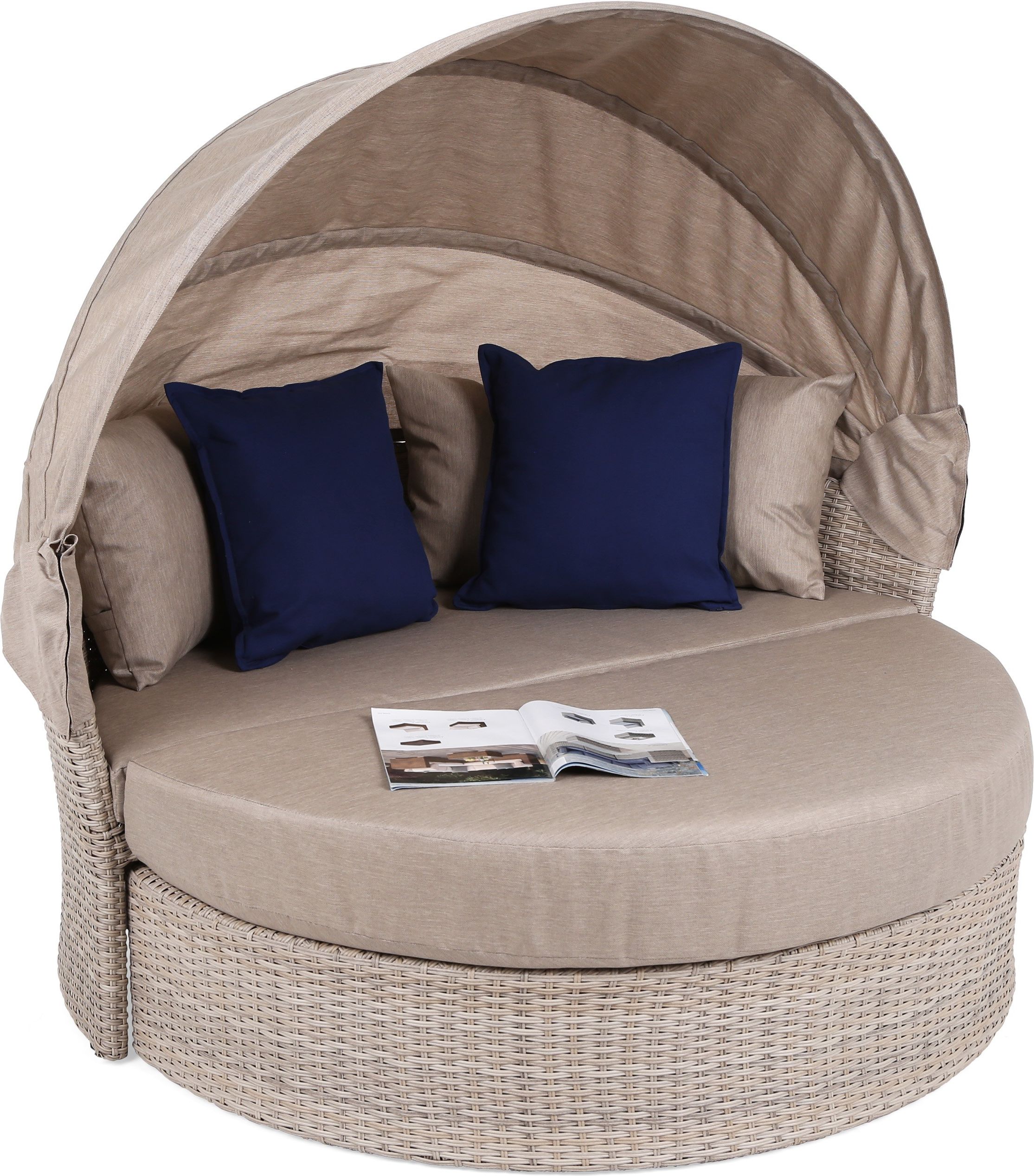 Sofa ogrodowa marki HOME & GARDEN w eleganckim beżowo-brązowym wykończeniu to nowoczesna i funkcjonalna propozycja na taras lub ogród.