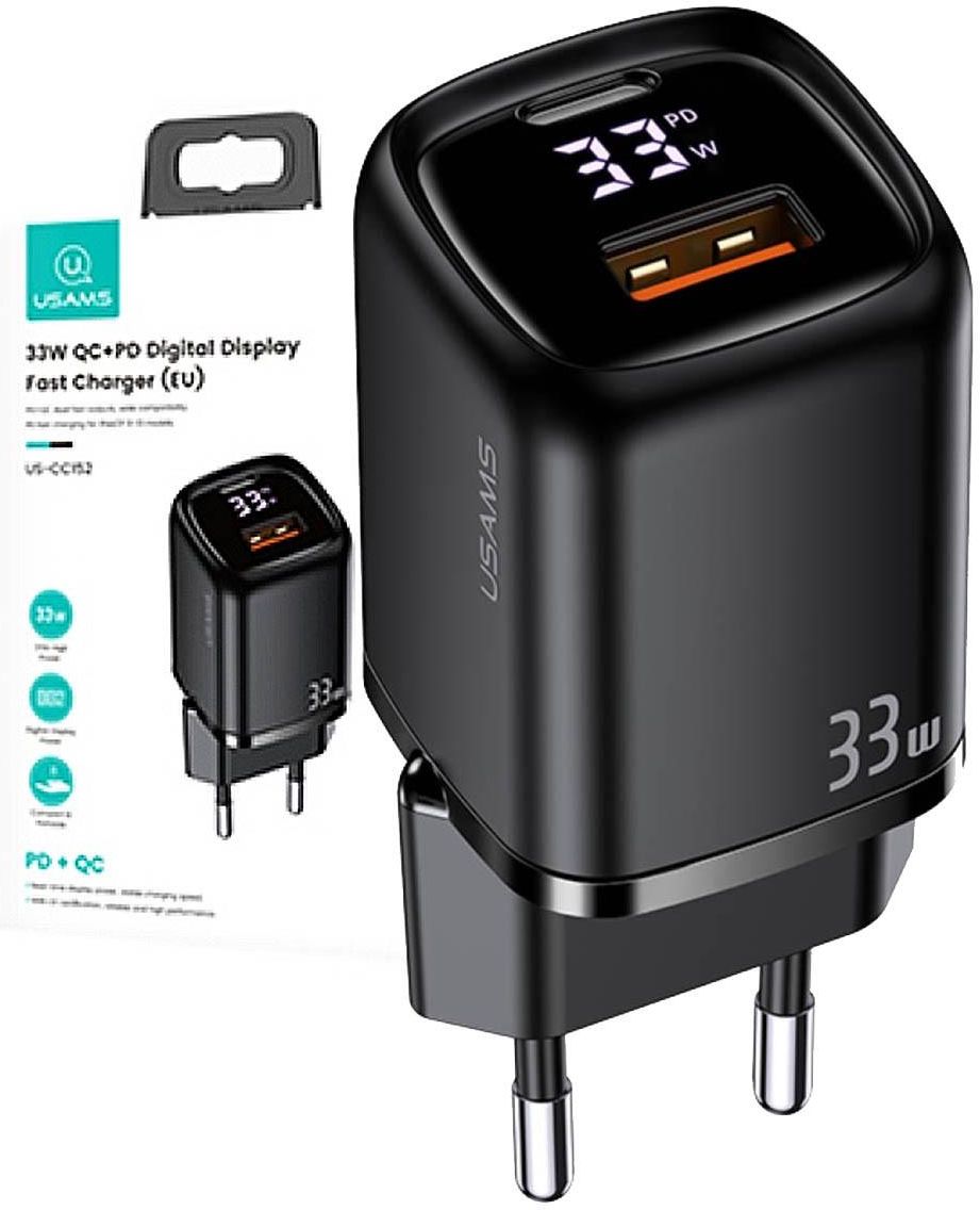 ŁADOWARKA SIECIOWA USAMS US-CC152 T46 A+C DUAL-PORT DIGITAL DISPLAY FAST CHARGE CHARGER 33W EU BLACK Mikstat