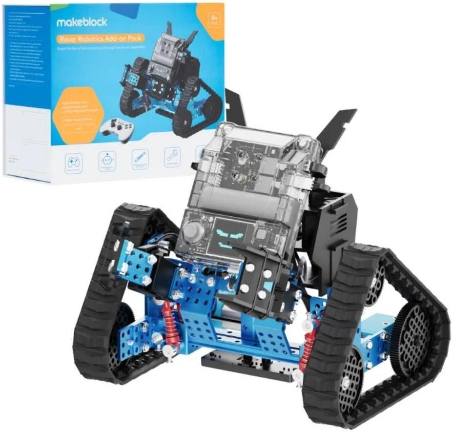 Makeblock Rover Robotics Add-on Pack to rozszerzenie do robota mBot2, które zwiększa jego możliwości konstrukcyjne i funkcjonalne. Zestaw umożliwia budowę robotów o zaawansowanej mobilności - od pojazdów gąsienicowych po roboty eksploracyjne. Wspiera naukę STEM, rozwijając umiejętności inżynieryjne i programistyczne. Zawiera metalowe elementy konstrukcyjne, gąsienice, koła oraz instrukcję montażu. Kompatybilność z mBlock pozwala na programowanie AI, w tym rozpoznawanie emocji i generowanie obrazów.