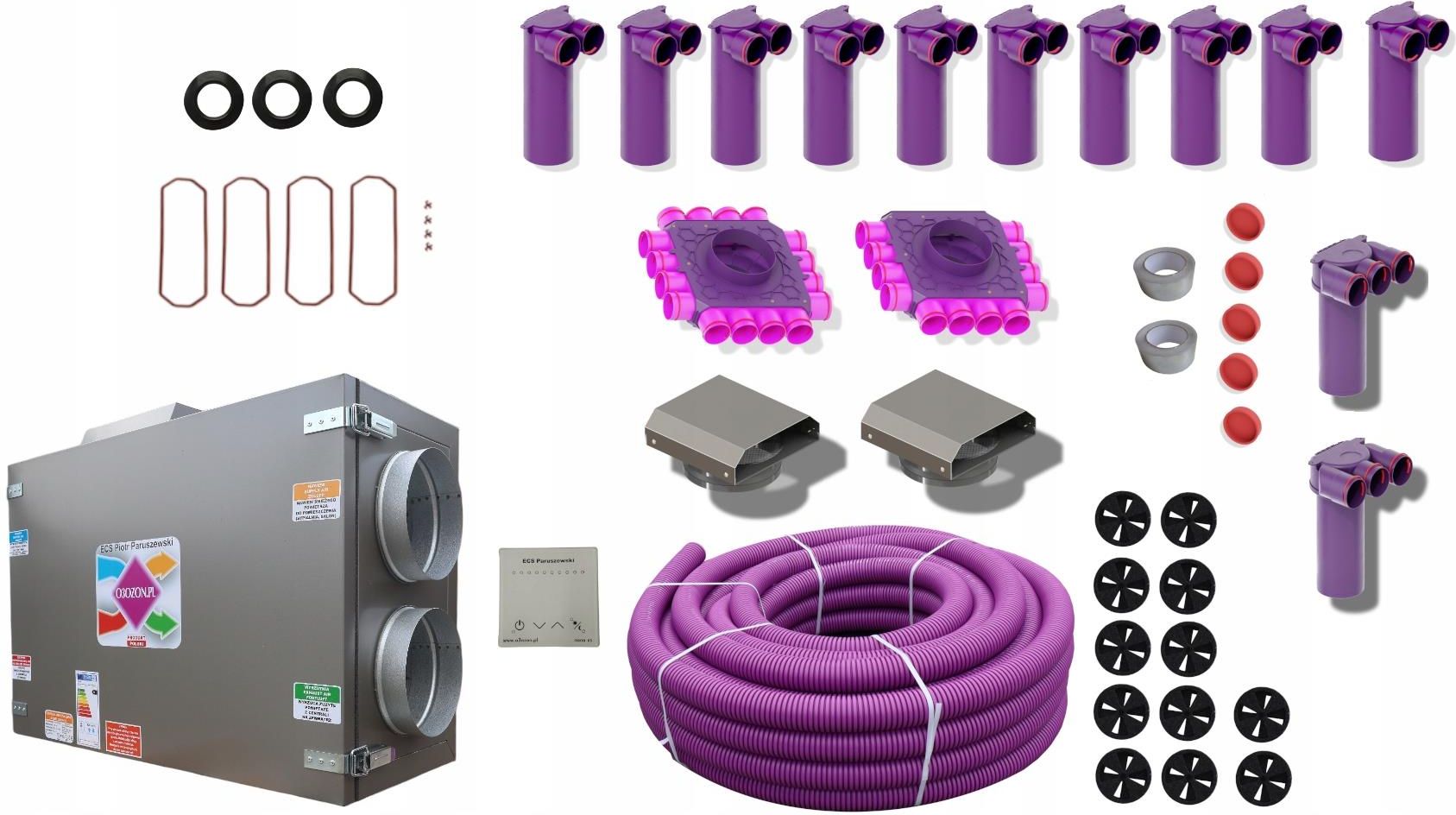 Kurs montażu systemu rekuperacji 50+ na posadzki 5cm styropianu 10cm posadzki https://www.youtube.com/watch?v=GF1mRaIuaEw Zestaw elementów rekuperacji mechanicznej do samodzielnego montażu dla domu parterowego (1 kondygnacja) o powierzchni 100-150 m2 Wykonany na instalacji o średnicy 75mm W skład zestawu wchodzi ✅ Rura wentylacyjna z powłoką antybakteryjną (30 ppm Ag) 75mm - 200 mb (4 krążki) ✅ Skrzynka rozdzielcza 12x75/200 - 1 szt. ✅ Skrzynka rozdzielcza 16x75/200 - 1 szt. ✅ Skrzynka rozprężna 2x75/125 -10 szt. ✅ Skrzynka rozprężna 3x75/125 -2 szt. ✅ Czerpnia K1 - 1szt. ✅ Wyrzutnia K1 - 1szt. ✅ Zaślepka - 5 szt. ✅ Przepustnica Max-Vent - 12 szt. ✅ Rekuperator CWP 360 - 1 szt. ✅ Taśma - 2szt. ✅ Uszczelki - 48 szt. Jedyny system kompletnie przebadany, zadbaj o swoje zdrowie i bezpieczeństwo. System posiada: Atest higieniczny systemu MAX-VENT Atest szczelności systemu MAX-VENT Atest higieniczny systemu EPS Atest grzybostatyczny systemu MAX-VENT Atest antybakteryjny systemu MAX-VENT Atesty higieniczne centrali wentylacyjnych Atesty kanałów wentylacyjnych 63mm 75mm 90mm Badania biobójcze systemu EPS z powłoką O3OZON Atesty uszczelek Centrala wentylacyjna Wydajność centrali: do 300 m³/h Moc: min. 30 W, max. 120 W Ciśnienie: do 200 Pa Wydajność wentylatorów: 2x550 m³/h Napięcie: 230 V, 50 Hz Sprawność odzysku ciepła: od 65% do 92% Obroty silnika: 2400 obr/min Poziom hałasu: 24-40 dB(A) Maksymalna temperatura pracy: do 45°C Obudowa: blacha Izolacja: wełna 40 mm Filtr nawiewu: G4 Filtr wyciągu: G4 Średnica króćców: 200 mm Sprawność rekuperatora: do 95% Typ rekuperatora: przeciwprądowy, wykonany z tworzywa System antyzamrożeniowy Waga: około 50 kg (porównaj z innymi produktami tej klasy!) Regulator prędkości obrotowej Przewód wentylacyjny MAX-VENT Z tworzywa sztucznego z gładką, antybakteryjną i antygrzybiczną (30 ppm Ag) średnica zewnętrzna: Ø75 mm Elastyczna rura wentylacyjna MAX-VENT służą do przemieszczania, transportowania powietrza nawiewnego i wywiewnego w systemach wentylacji mechanicznych Przewody charakteryzują się: -Dużą elastycznością -Dwuwarstwowa konstrukcja gwarantuje dużą wytrzymałość i umożliwia np. zalanie betonem konstrukcyjnym i tłumi hałas oraz izoluje termicznie. Dwuwarstwowa rura MAX-WENT posiada powłokę wewnętrzna antybakteryjne i grzybobójczą w postaci aktywnych cząstek srebra Warstwa wewnętrzna posiada również działanie antystatyczne, co ogranicza osiadanie i gromadzenie się kurzu w rurach. NASZE PRODUKTY MAJĄ DOSKONAŁE WŁAŚCIWOŚCI BIOBÓJCZE, POTWIERDZONE ODPOWIEDNIMI BADANIAMI ⬅️ SKRZYNKA ROZPRĘŻNA 75mm / 125mm Zawiera zacisk do kanałów wentylacyjnych. Średnica kanału wentylacyjnego - 75mm Średnica kanału głównego - 125mm. Warstwa cząsteczek srebra niweluje zapachy, jest antystatyczna, antybakteryjna i biobójcza. Możliwość przycięcia i skrócenia skrzynki. Nadaję się na stronę wyciągową i nawiewną. WYRÓŻNIAJĄCE CECHY PRODUKTU Wzmocniona konstrukcja (inspiracja zaczerpnięta z przyrody TECHNOLOGIA PLASTRÓW MIODU) Wzmocnienie zewnętrzne zwiększa wytrzymałość nie ingeruje w przepływ Wydłużone mocowanie na kanał -75mm (w niektórych przypadkach mocowanie pierścieniami będzie zbędne) Kształt w środku skrzynek wygłusza dźwięk i stabilizuje przepływ powietrza , zmniejsza opór , odpowiednio kierując powietrze do odpowiedniego kanału wentylacyjnego (znacznie lepiej sobie radzą niż znane dotychczas na rynku niektóre produkty tej klasy i wyższej ) Są ciche nie trzeba ich wytłumiać Stawiają mały opór USZCZELKA OBWODOWA gwarantująca zawsze szczelność (nie musisz używać specjalnego drogiego noża jednorazowego do obcinania kanałów wentylacyjnych (rur) DBAMY O ŚRODOWISKO I TWÓJ PORTFEL ) Mają dodatek srebra są antybakteryjne biobójcze Są antystatyczne Zastosowano technologie XXI wieku NANOMATERIAŁY która polepsza właściwości mechaniczne, lepsze właściwości wizualne, konstrukcyjne , zwiększa aktywność chemiczną, zwiększa działanie antybakteryjne powodując mniejsze obciążenie dla środowiska , zapewnia długotrwałą ochronę mikrobiologiczną Zobacz prezentację systemu MAX-VENT gen2 , bardzo łatwo go zamontujesz, a z kanału na youtube Piotr Paruszewski nauczysz się jak robić rekuperację, jak zamontować urządzenia, jak dobrać , jak zaprojektować wentylację z rekuperacją i klimatyzacją kanałową--- ps nie jest to trudne, zobacz i przekonaj się sam Prezentacja systemu: ▶️ https://youtu.be/zwnY-pdrwj8 Prezentacja całości klimatyzacji kanałowej GWC: ▶️ https://youtu.be/m8BvSsrRX5w Trwałość naszych produktów: ▶️ https://youtu.be/a3_OZIj2fLI Zobacz kurs montażu rekuperacji: ▶️ https://youtu.be/ZMhyH29QXEY Jak dobrać wybrać wymiennik do centrali wentylacyjnej: ▶️ https://youtu.be/PQYRlMa0cU4 Jak dobrać i zrobić czerpnie i wyrzutnie: ▶️ https://youtu.be/JaYdZvX_Jl0 Jak dobrać rekuperator, centrale wentylacyjną: ▶️ https://youtu.be/T4-kbpZCiRg Wielka teoria anemostatu przy rekuperacji wentylacji: ▶️ https://youtu.be/hmj_Zri58Wo Nawiewnik liniowy antresola jak zrobić: ▶️ https://youtu.be/zW6ewKM40F4 Wielka teoria rekuperacji wentylacji: ▶️ https://youtu.be/TUGCt0jLmsk Teoria rozmieszczenia anemostatów: ▶️ https://youtu.be/2DrL7inP8xA Rozmieszczenia anemostatów zgodnie z normą PN-83: ▶️ https://youtu.be/tT88G79NqjE Łączenie skrzynek rozdzielczych: ▶️ https://youtu.be/Uq1FjNinR7U Rozmieszczenia anemostatów zgodnie z MODĄ FACEBOOK: ▶️ https://youtu.be/qKcPhyyynKM Rozmieszczenia anemostatów pomysły Paruszewskiego: ▶️ https://youtu.be/TzhaNNL84hU Zobacz źródło wiedzy naucz się nowego zawodu, na kanale są dziesiątki filmów, setki porad od osoby z 20 letnim doświadczeniem, znajdziesz kompendium wiedzy o wentylacji, rekuperacji itd... Czerpnia, wyrzutnia Średnica: Ø 200 Wykonana z blachy kwas