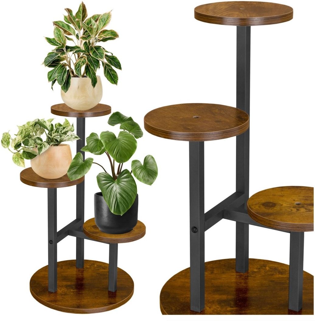 KWIETNIK METALOWY STOJAK NA KWIATY DONICZKI STOJĄCY REGAŁ Z PÓŁKAMI LOFT Okrągłe półki wykonane z płyty laminowanej w kolorze postarzany dąb Trzy różne wysokości półek Metalowy stelaż malowany proszkowo w kolorze czarny mat Podkładki ochronne na taśmę 3M Zakup od producenta Kwietnik metalowy …